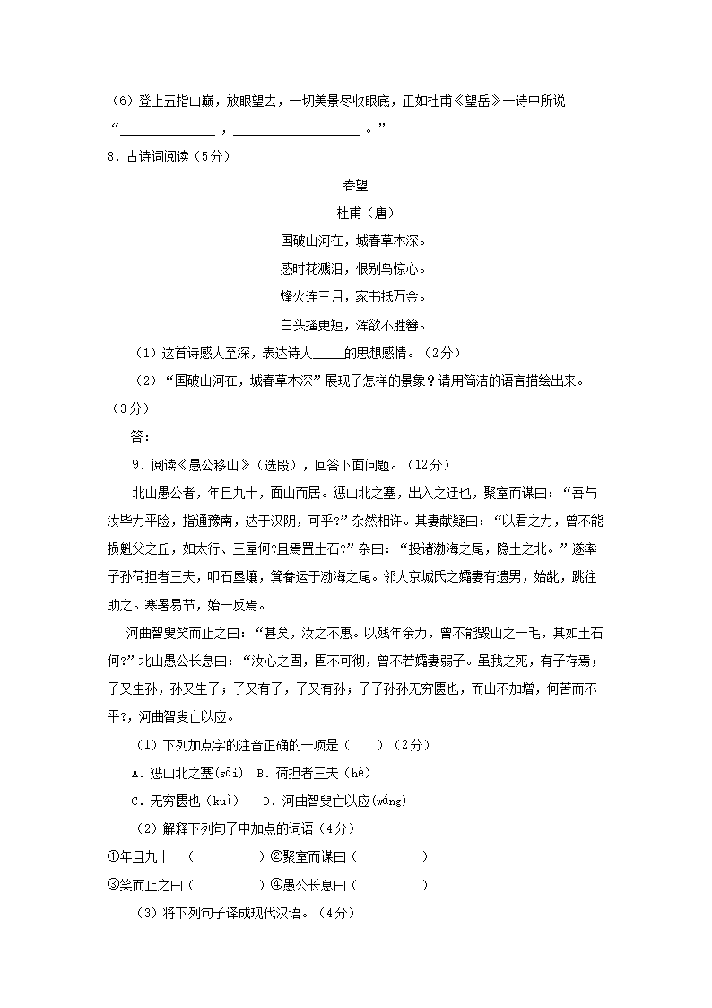 【文档预览】 无忧考网整理发布2011年海南省海口市中考语文真题及答案(Word版),前五页预览如下: