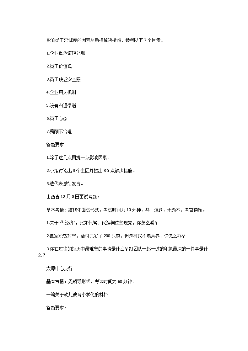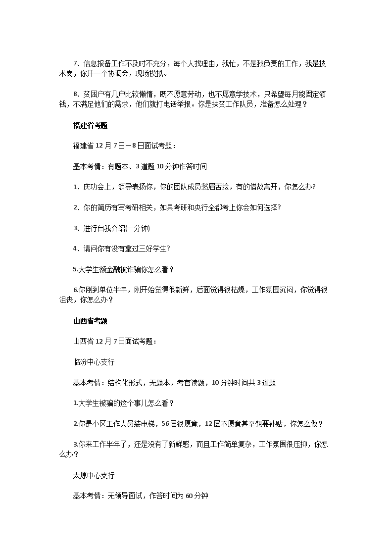 【文档预览】 无忧考网整理发布2020年中国人民银行招聘面试真题(Word版),前五页预览如下: