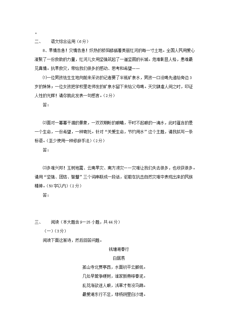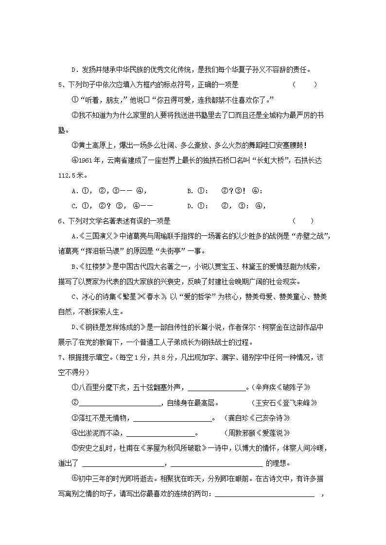 【文档预览】 无忧考网整理发布2010年云南楚雄中考语文真题及答案(Word版),前五页预览如下: