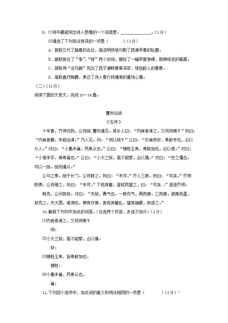 【文档名称】 2010年云南楚雄中考语文真题及答案(Word版).doc