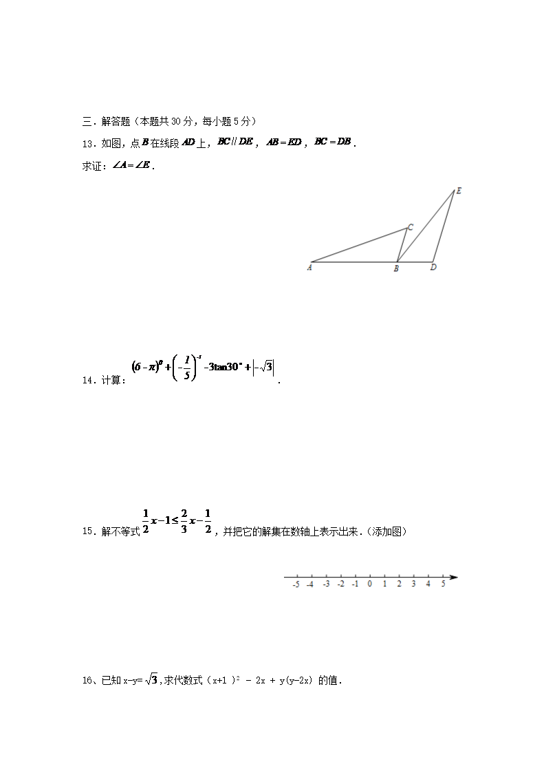 【文档名称】 2014北京通州中考数学真题及答案(Word版).doc