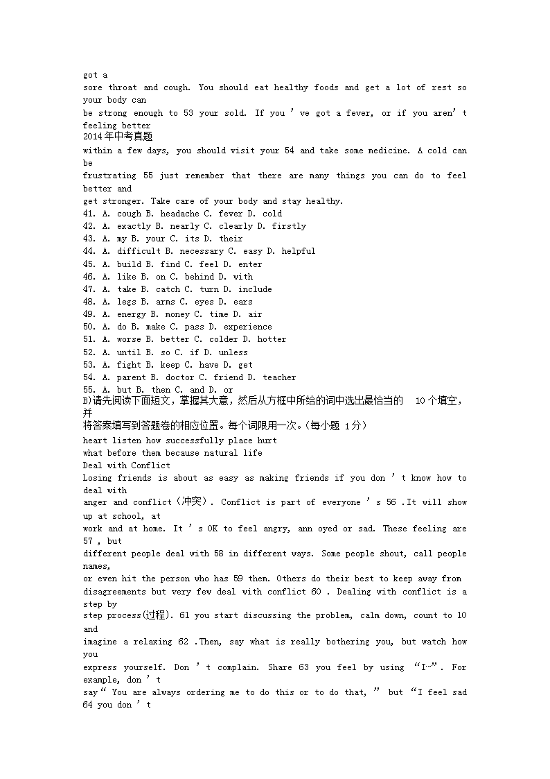 【文档预览】 无忧考网整理发布2014年江西鹰潭中考英语真题及答案(Word版),前五页预览如下: