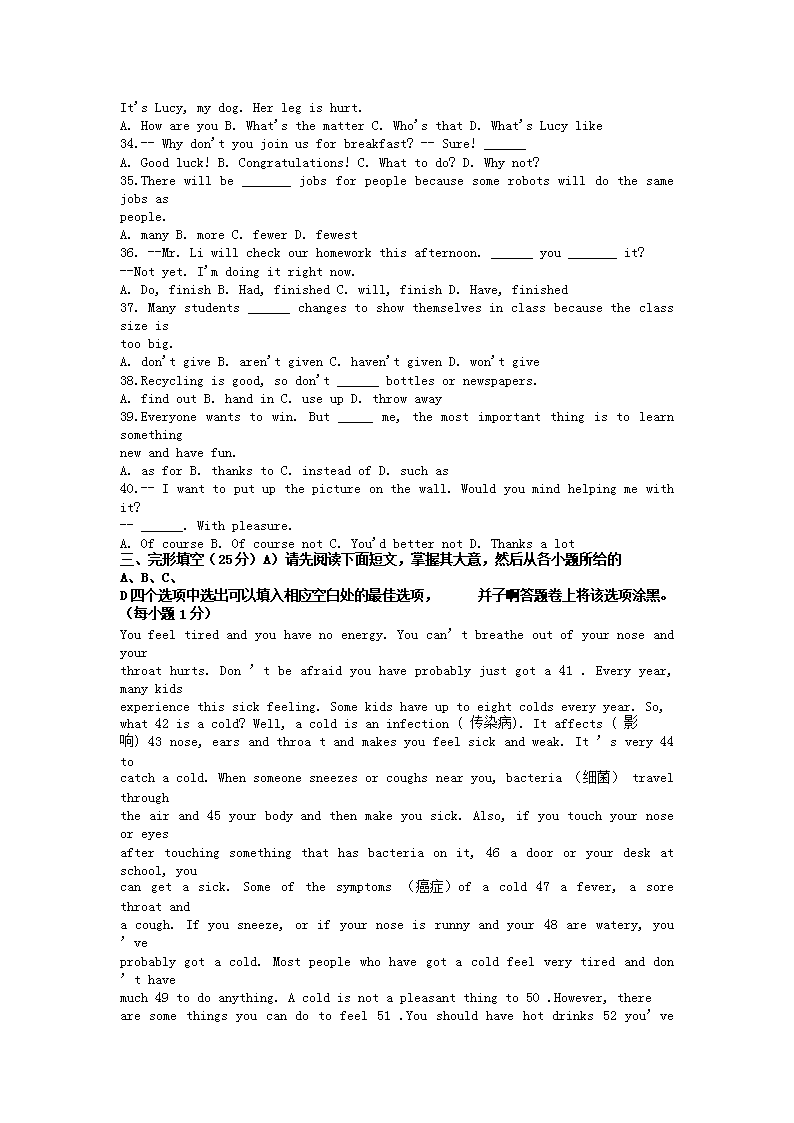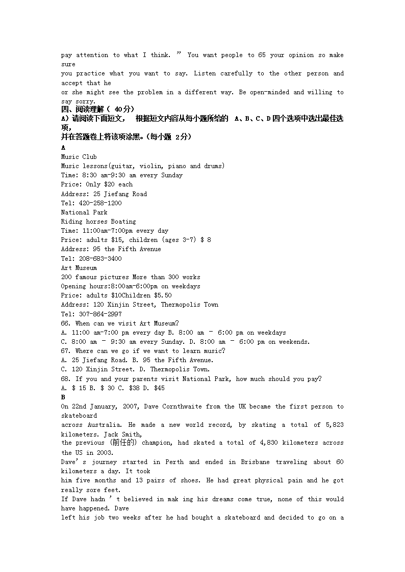 【文档名称】 2014年江西鹰潭中考英语真题及答案(Word版).doc