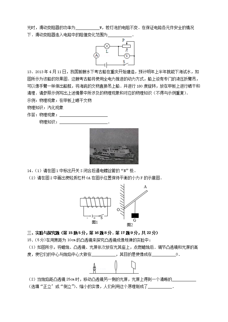 【文档名称】 2013年重庆巴南中考物理真题及答案B卷(Word版).doc