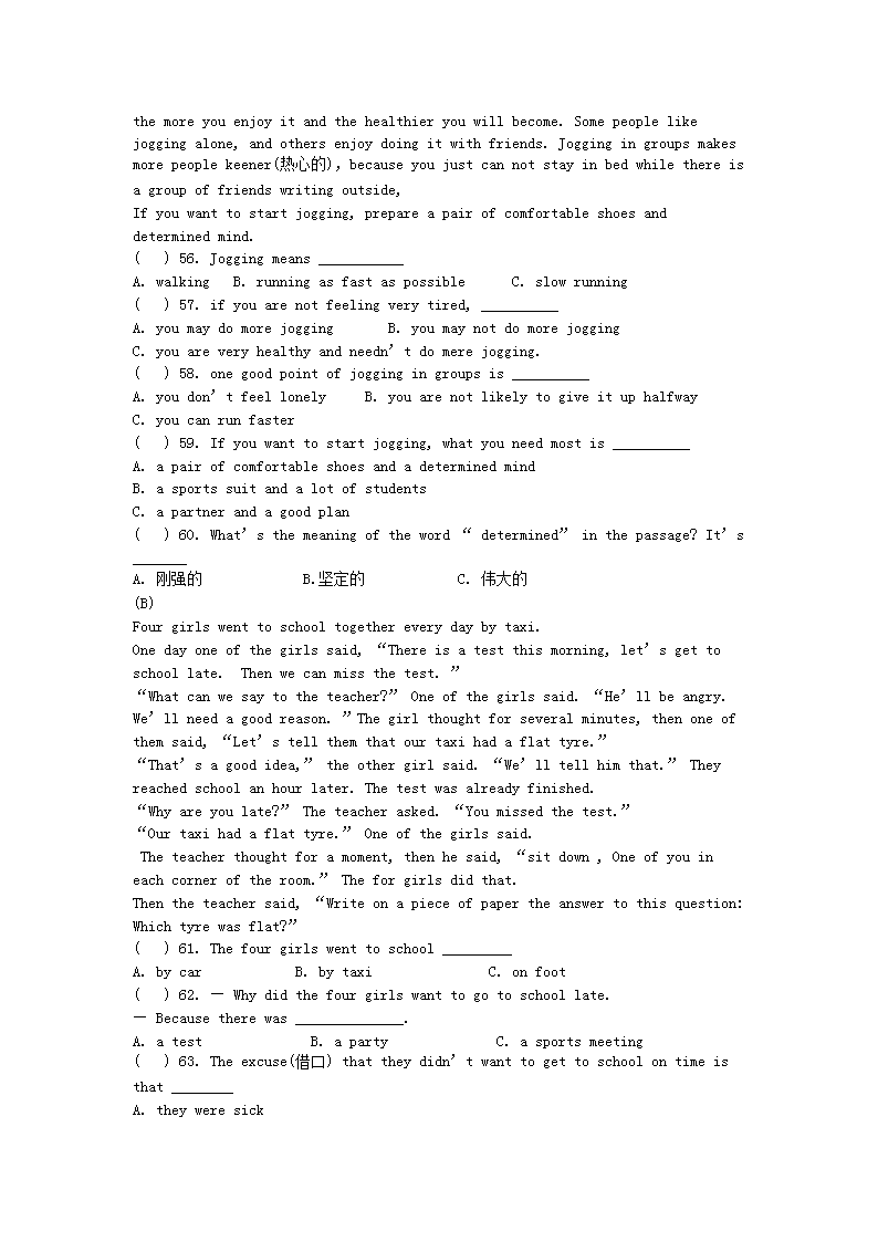 【文档名称】 2007年山西省长治中考英语真题及答案(Word版).doc