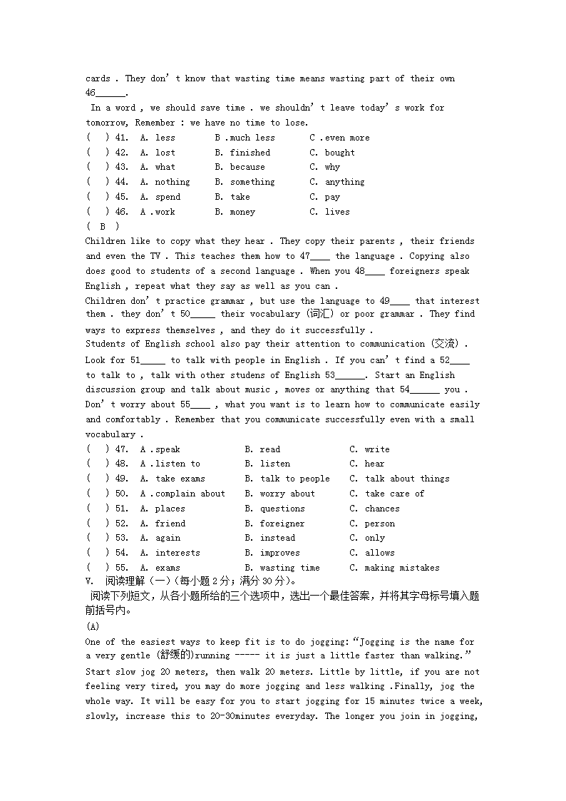 【文档预览】 无忧考网整理发布2007年山西省长治中考英语真题及答案(Word版),前五页预览如下: