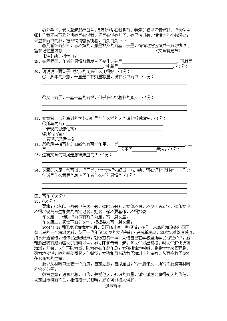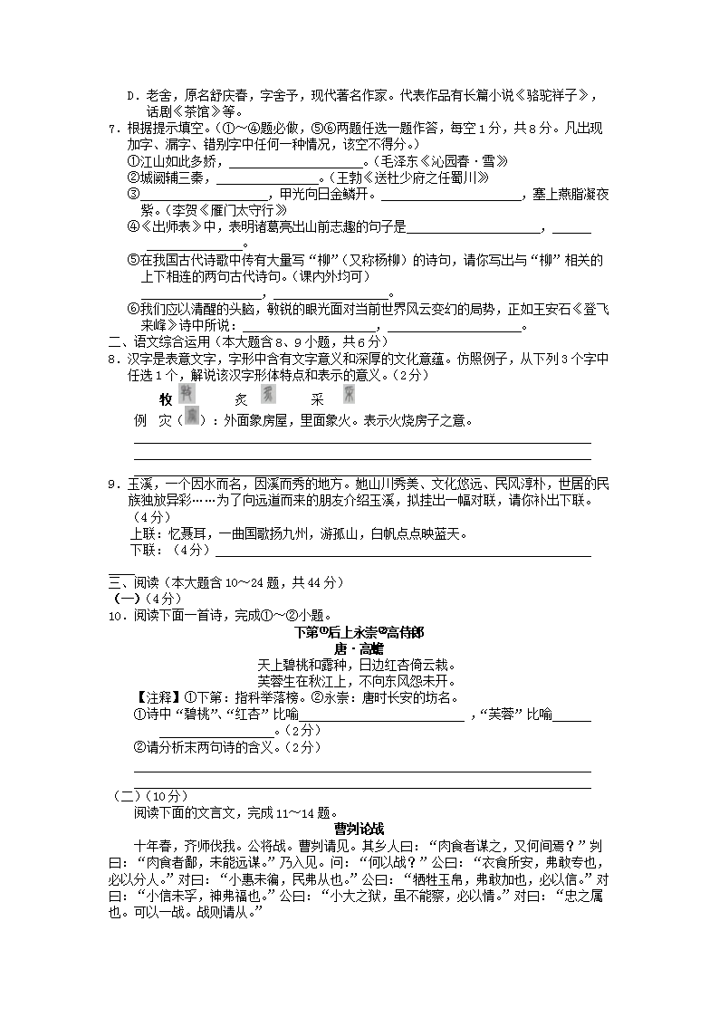 【文档预览】 无忧考网整理发布2010年云南玉溪中考语文真题及答案(Word版),前五页预览如下: