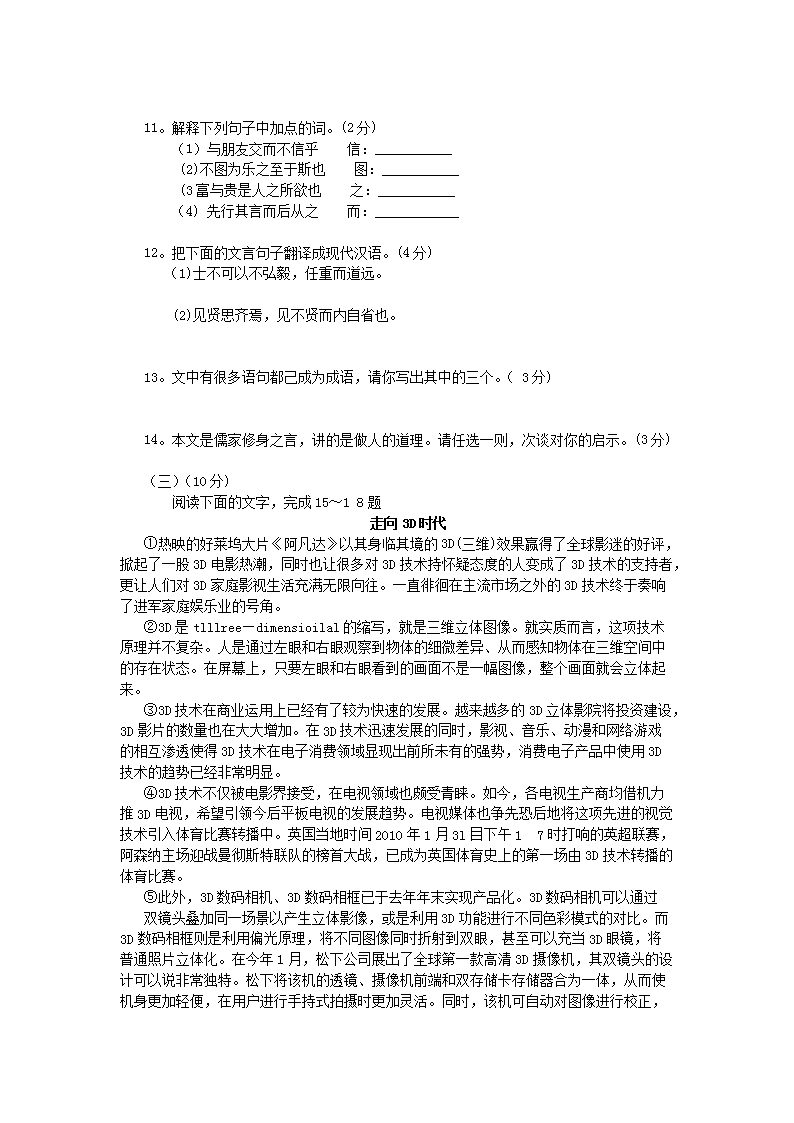 【文档预览】 无忧考网整理发布2010年云南曲靖中考语文真题及答案(Word版),前五页预览如下: