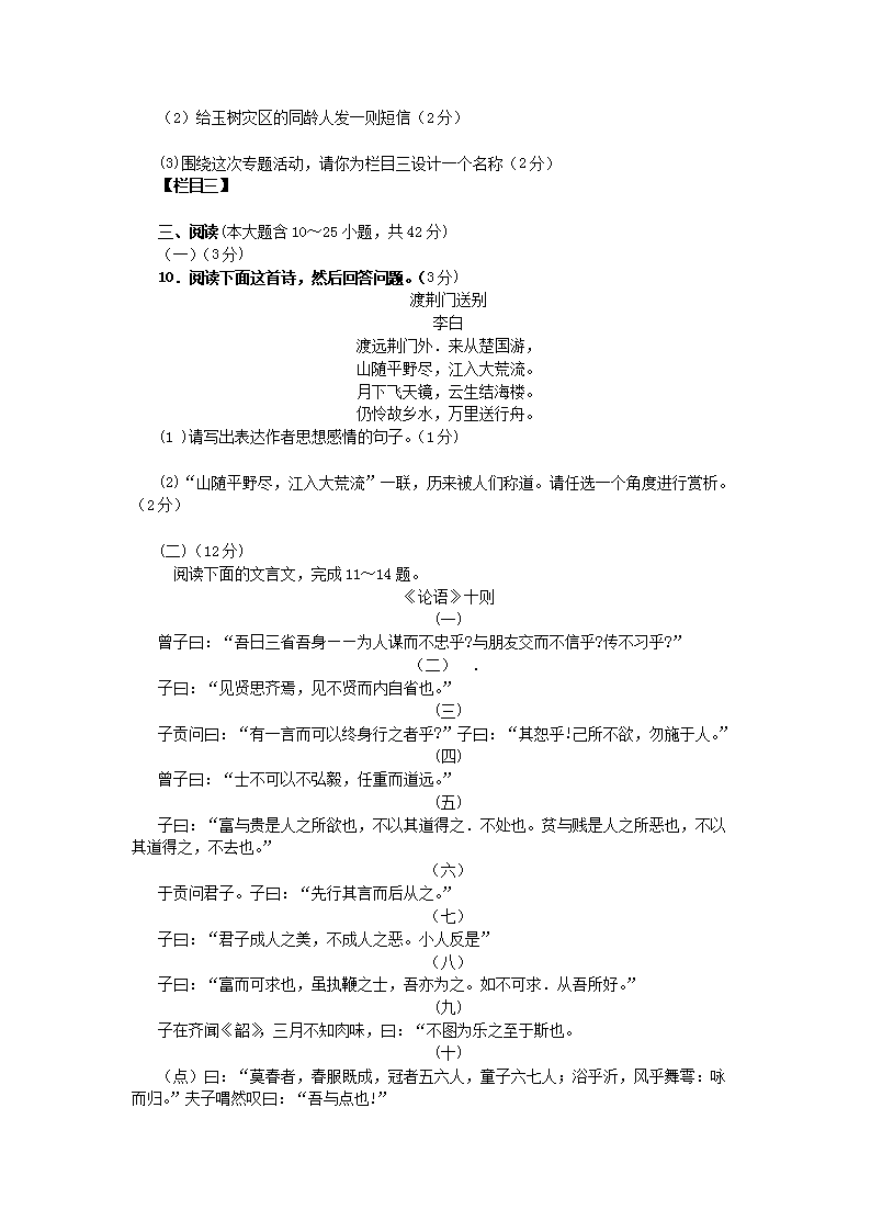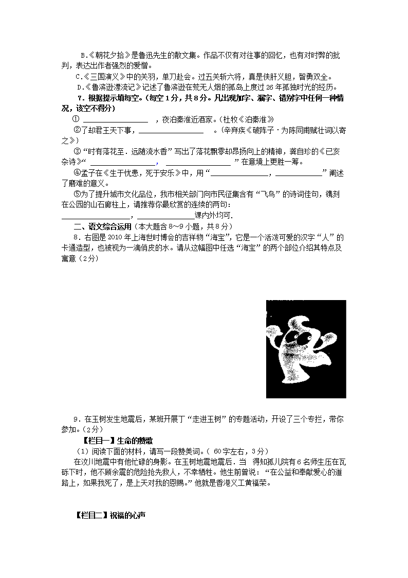 【文档名称】 2010年云南曲靖中考语文真题及答案(Word版).doc