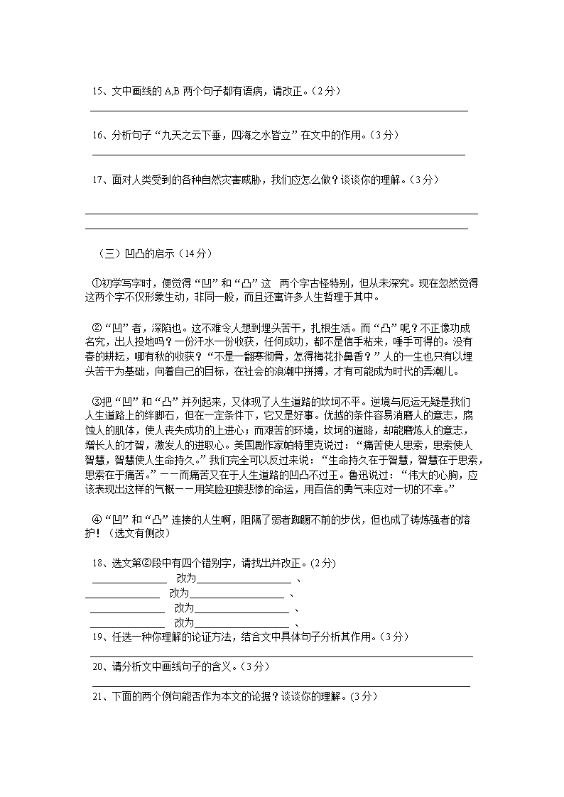 【文档预览】 无忧考网整理发布2005年云南曲靖中考语文真题及答案(Word版),前五页预览如下: