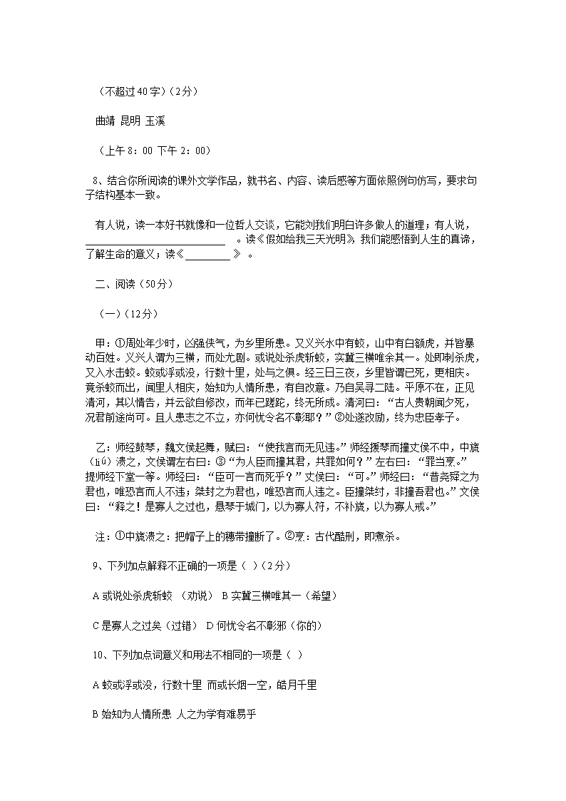【文档名称】 2005年云南曲靖中考语文真题及答案(Word版).doc