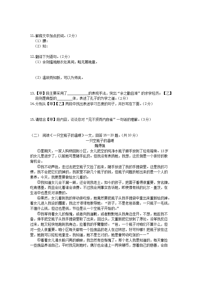【文档预览】 无忧考网整理发布2012年黑龙江齐齐哈尔中考语文真题及答案(Word版),前五页预览如下: