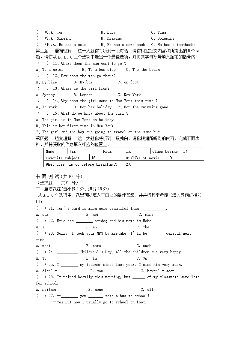 【文档预览】 无忧考网整理发布2007年山西省阳泉中考英语真题及答案(Word版),前五页预览如下: