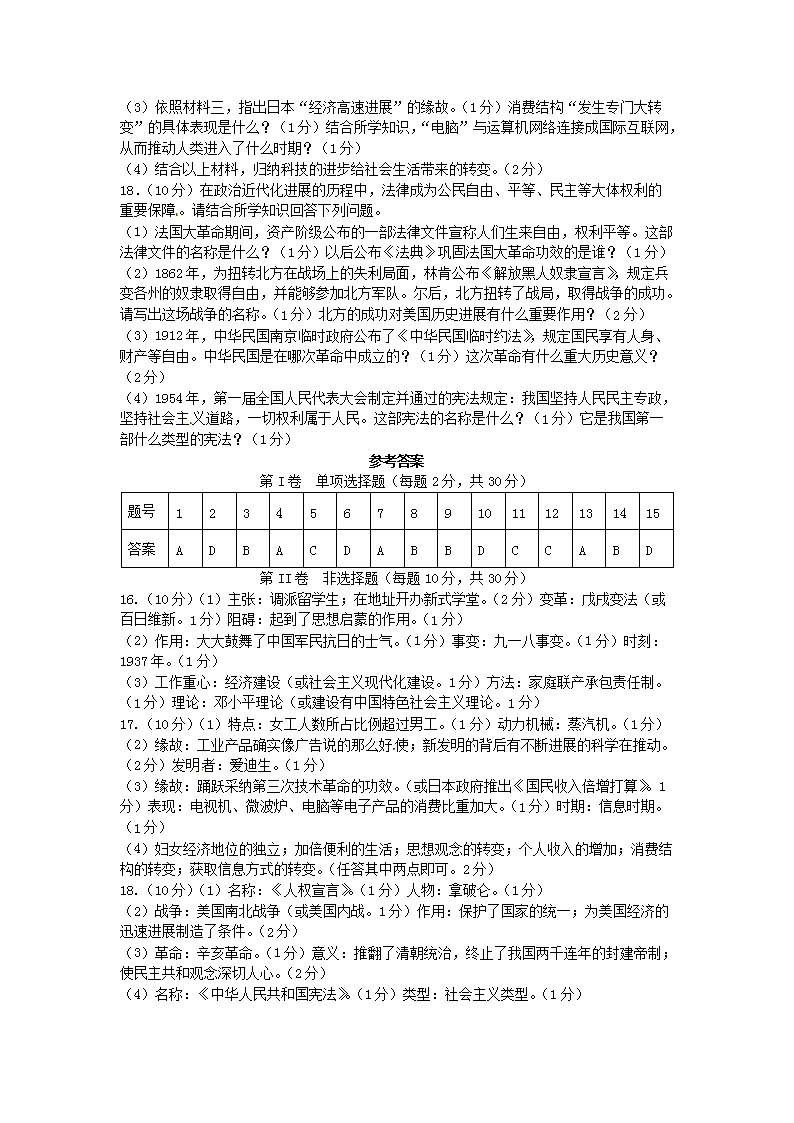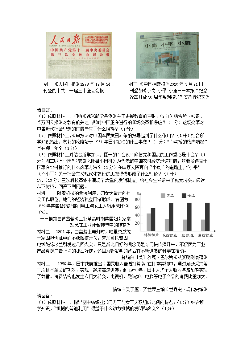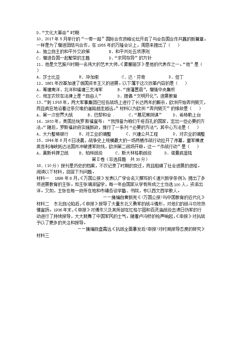 【文档名称】 2017年广西防城港市中考历史真题及答案(Word版).doc