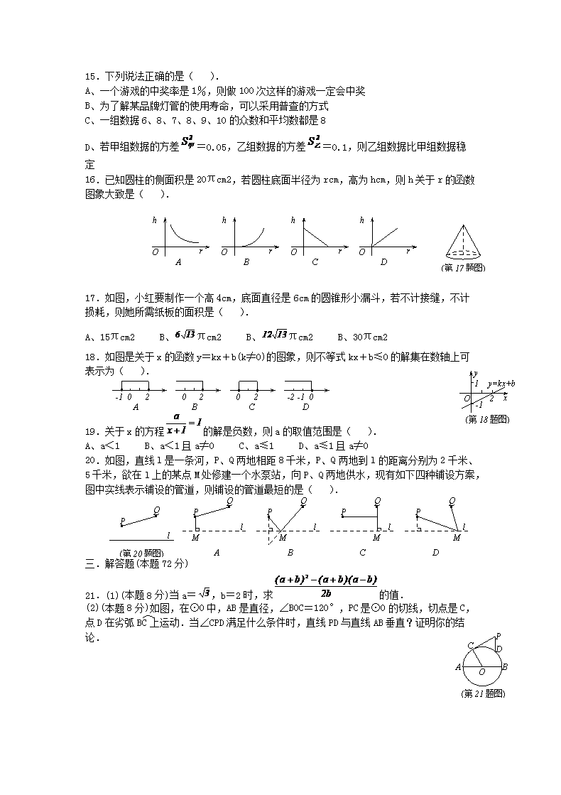 【文档名称】 2007年山西省吕梁中考数学真题及答案(Word版).doc
