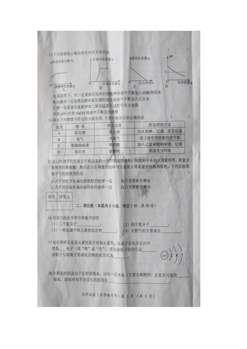 【文档名称】 2012年黑龙江齐齐哈尔中考化学真题及答案(图片版).doc