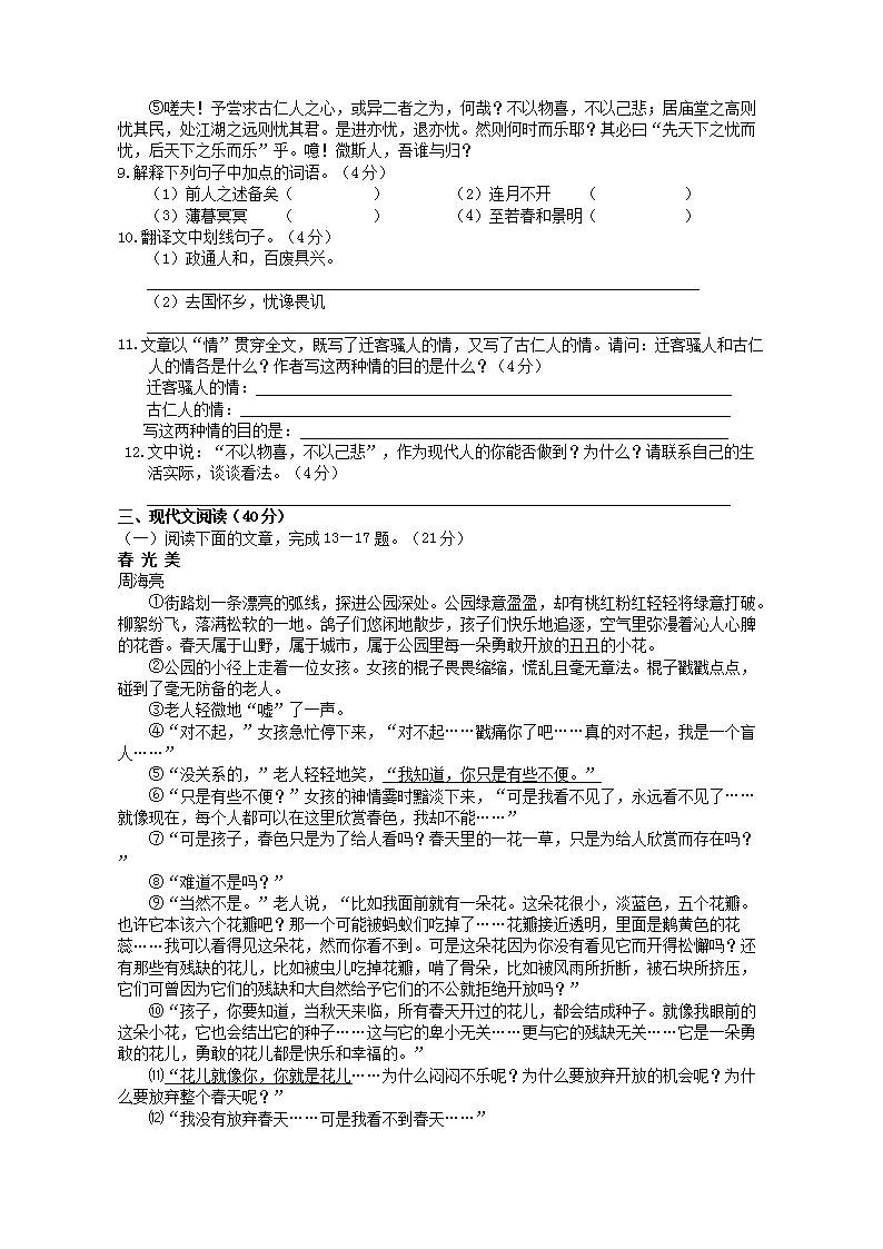 【文档预览】 无忧考网整理发布2012年重庆九龙坡中考语文真题及答案(Word版),前五页预览如下: