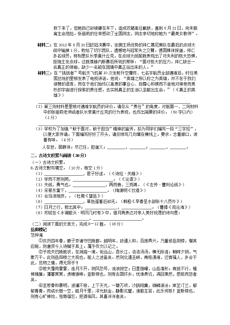 【文档名称】 2012年重庆九龙坡中考语文真题及答案(Word版).doc