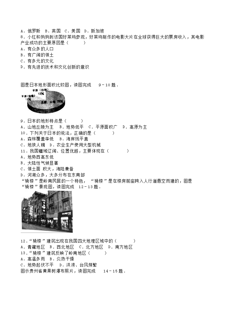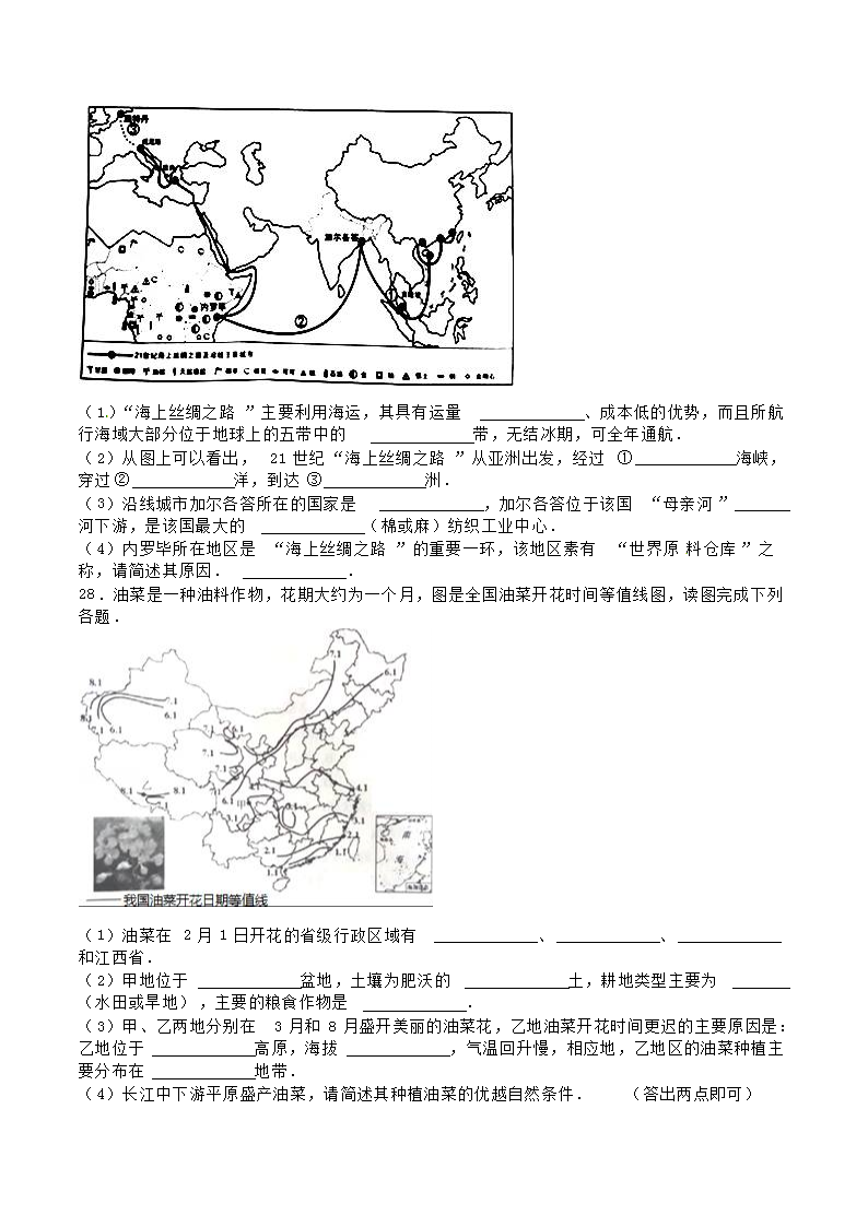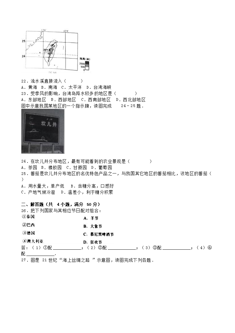 【文档名称】 2016年广西崇左市中考地理真题及答案(Word版).doc