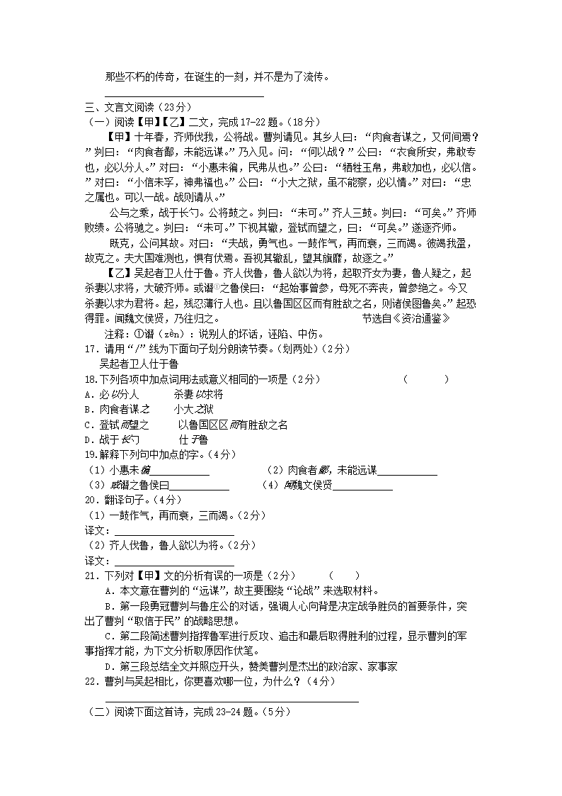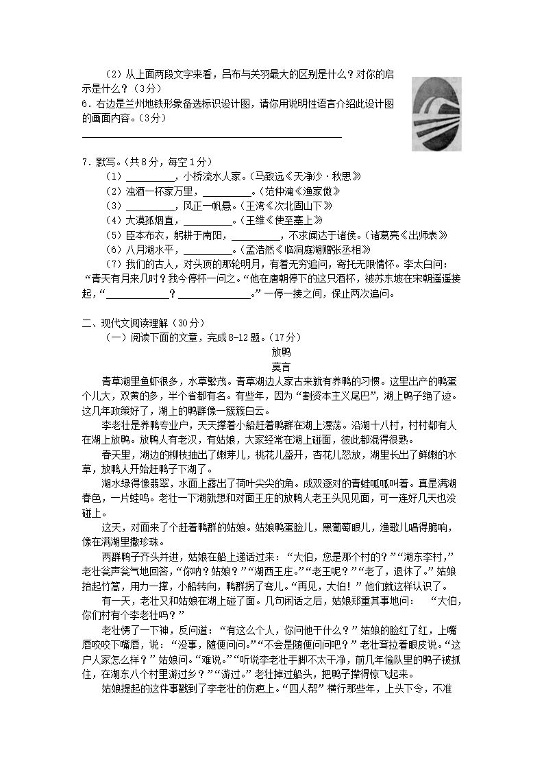 【文档预览】 无忧考网整理发布2013年甘肃省庆阳市中考语文真题及答案(Word版),前五页预览如下: