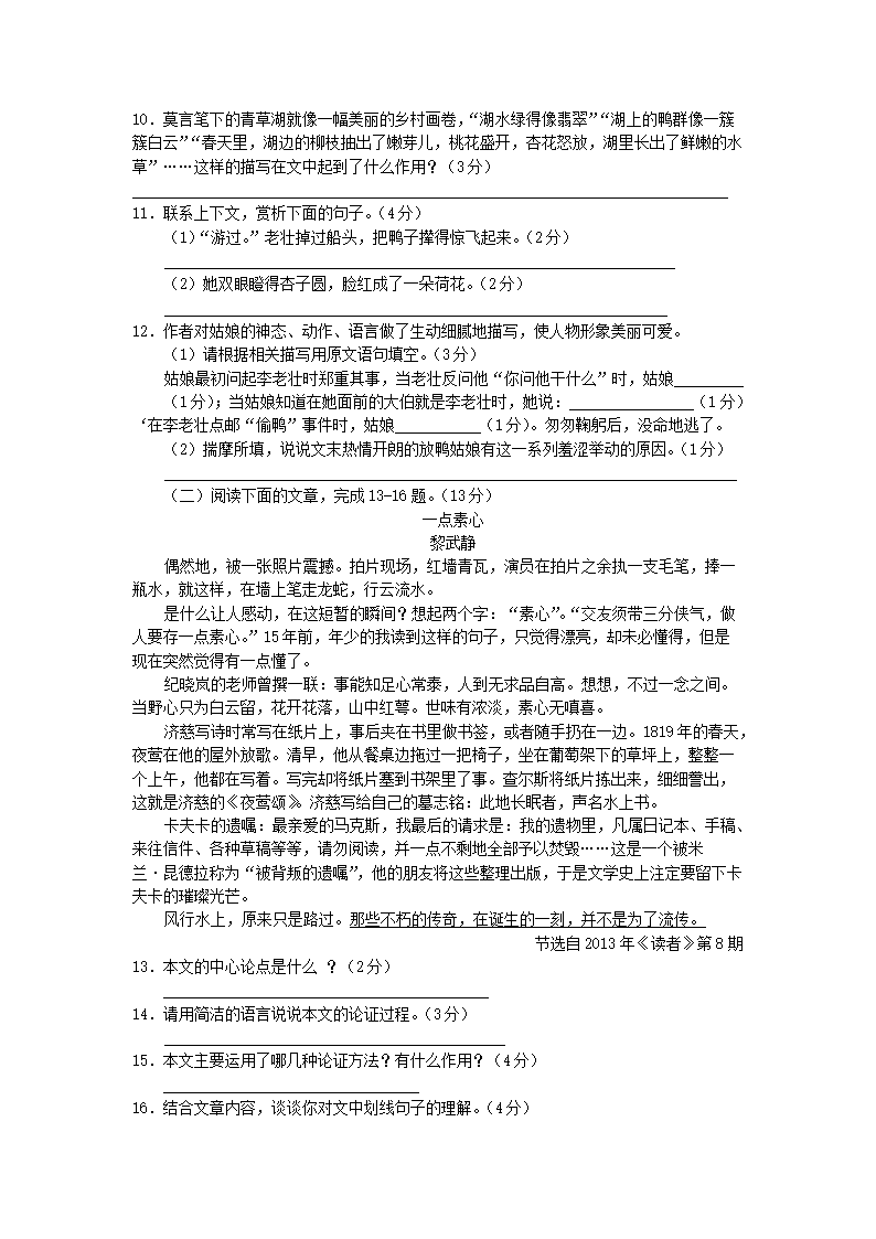 【文档名称】 2013年甘肃省庆阳市中考语文真题及答案(Word版).doc