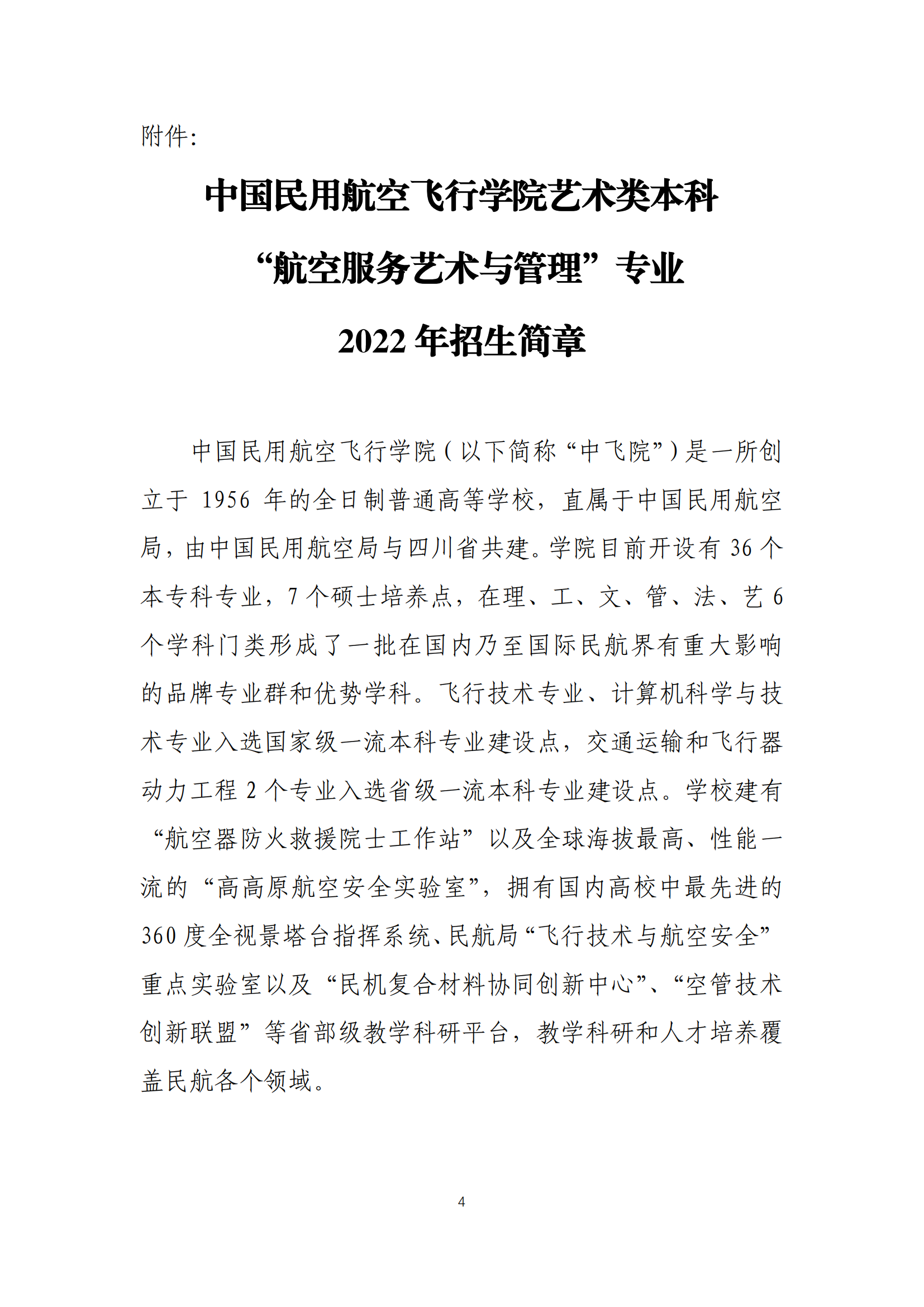 江西:中国民用航空飞行学院2022年招收航空服务艺术与管理专业学生的通知