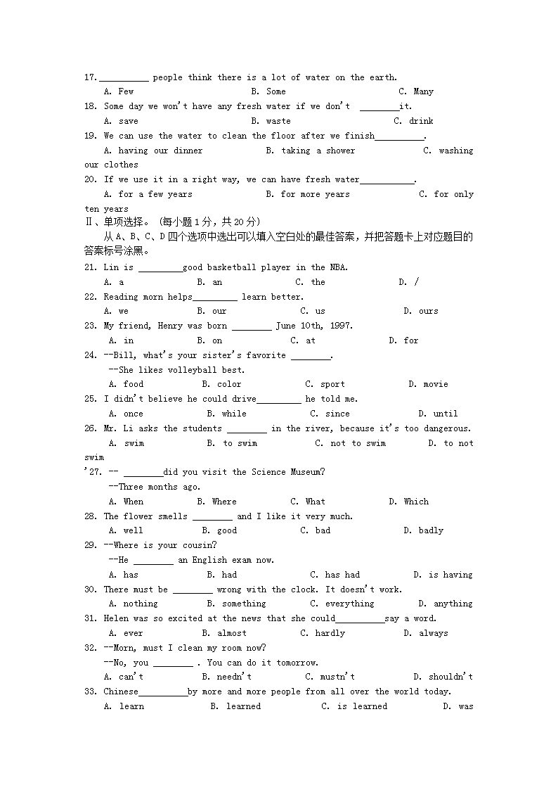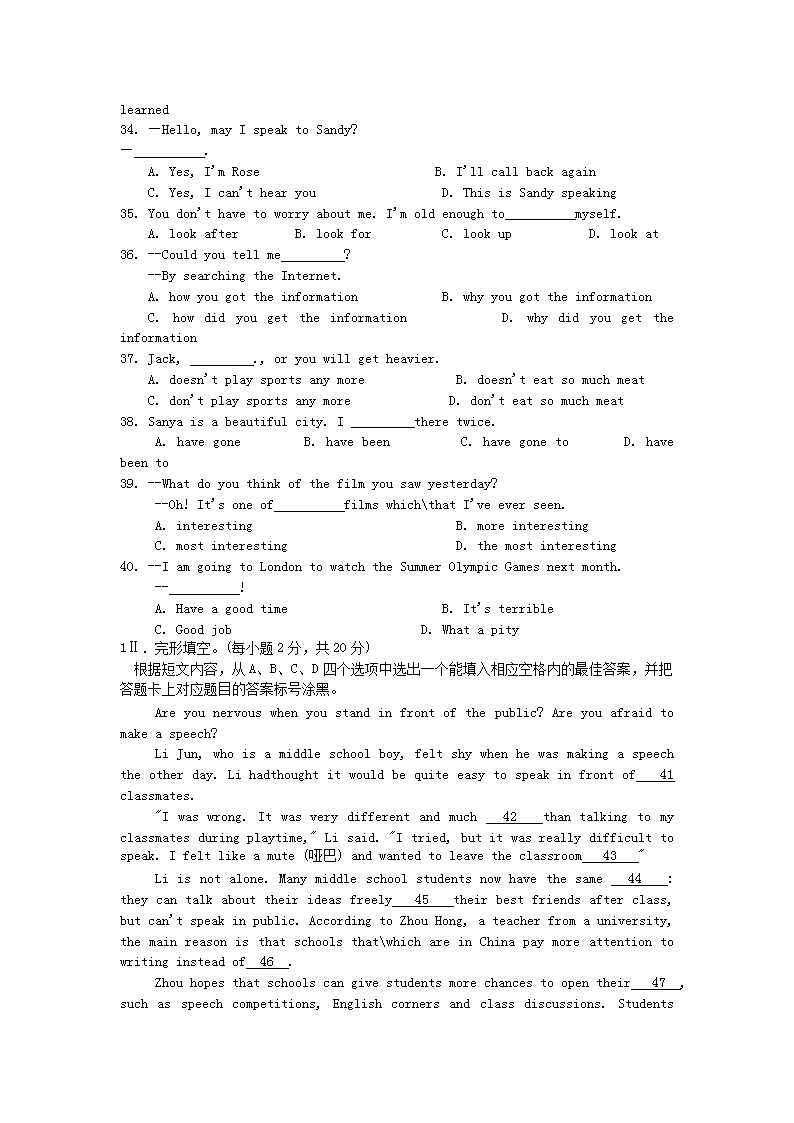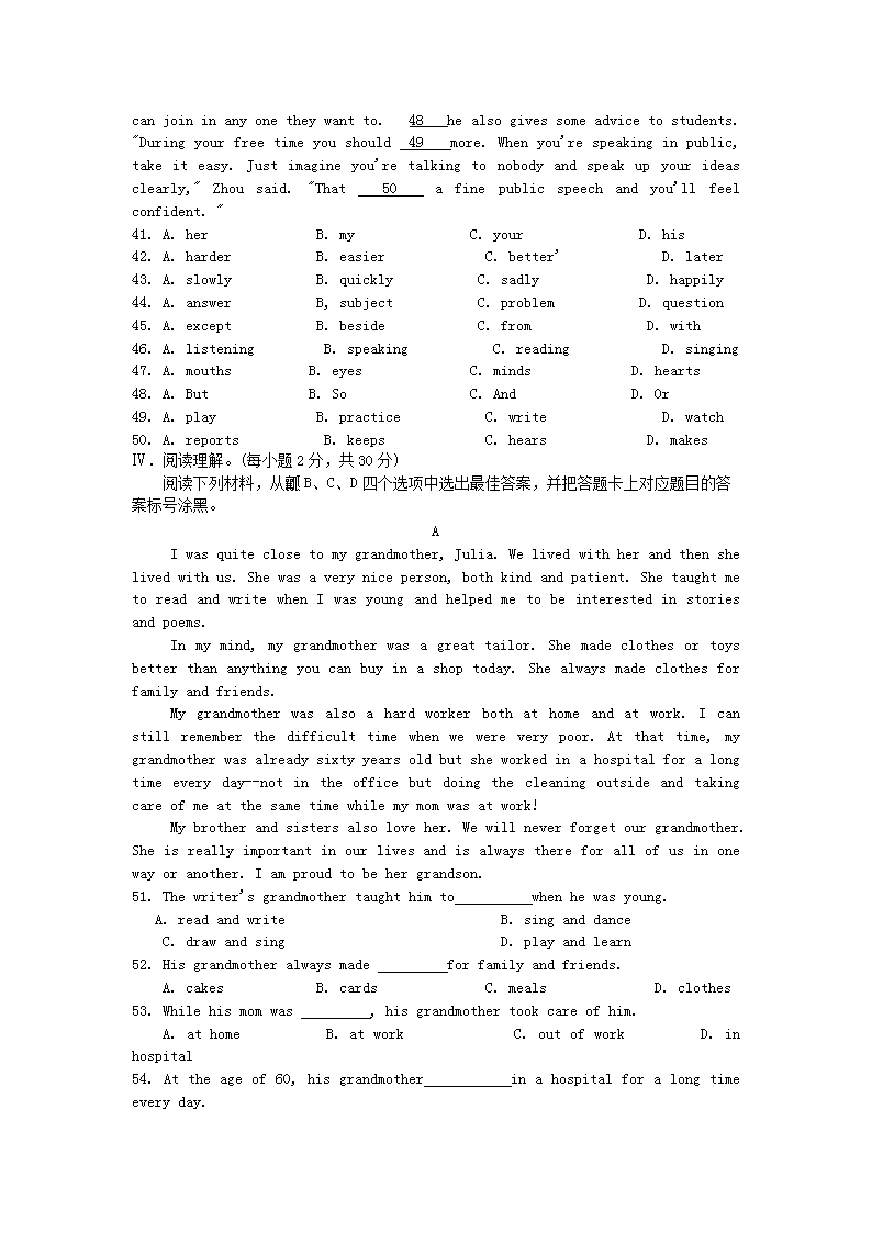 【文档名称】 2012年重庆涪陵中考英语真题及答案(Word版).doc