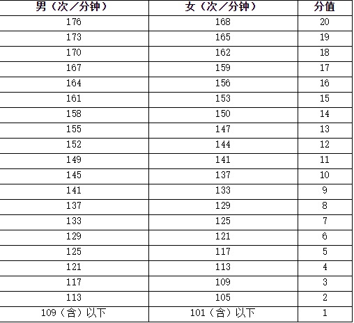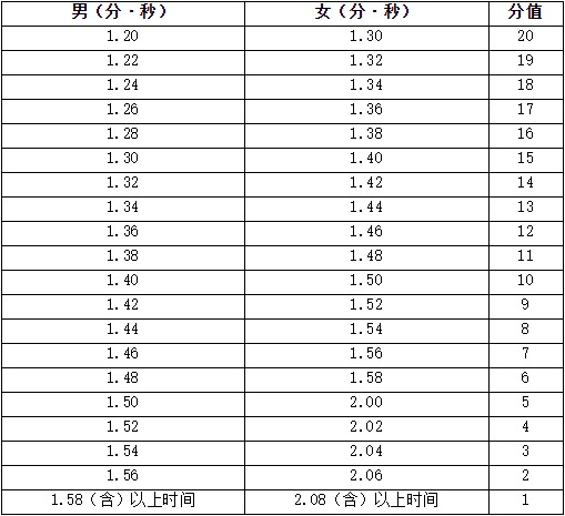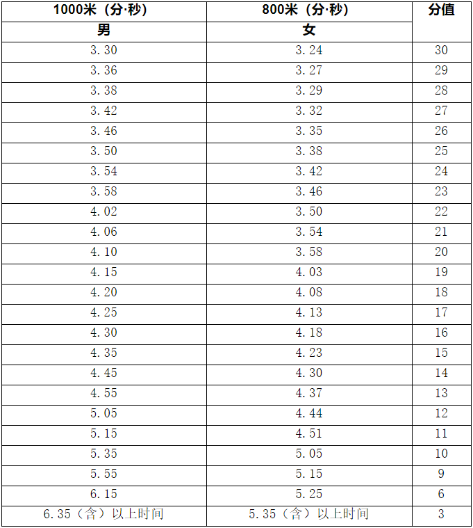 注:1000米、800米跑以分、秒为单位计录测试成绩,精确到1/100秒。
