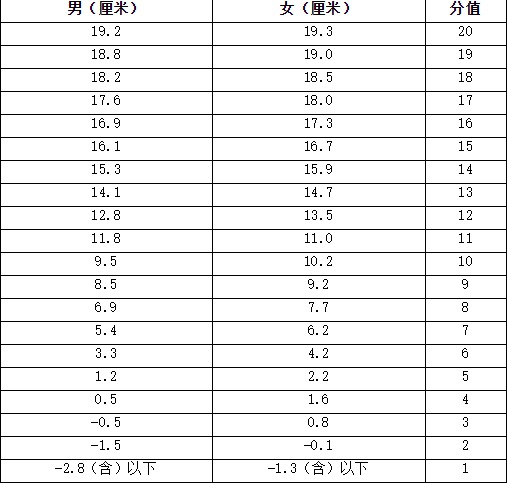 注:坐位体前屈以厘米为单位计录测试成绩,精确到一位小数。