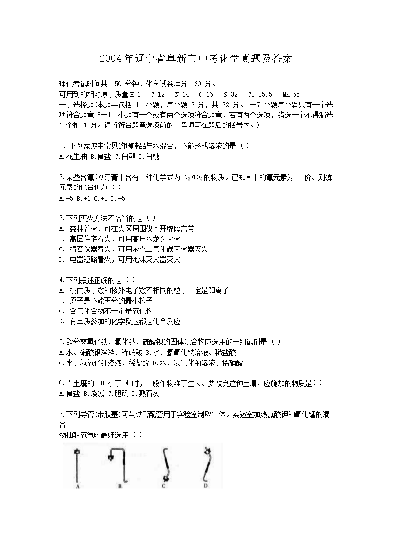 【文档名称】 2004年辽宁省阜新市中考化学真题及答案(Word版).doc