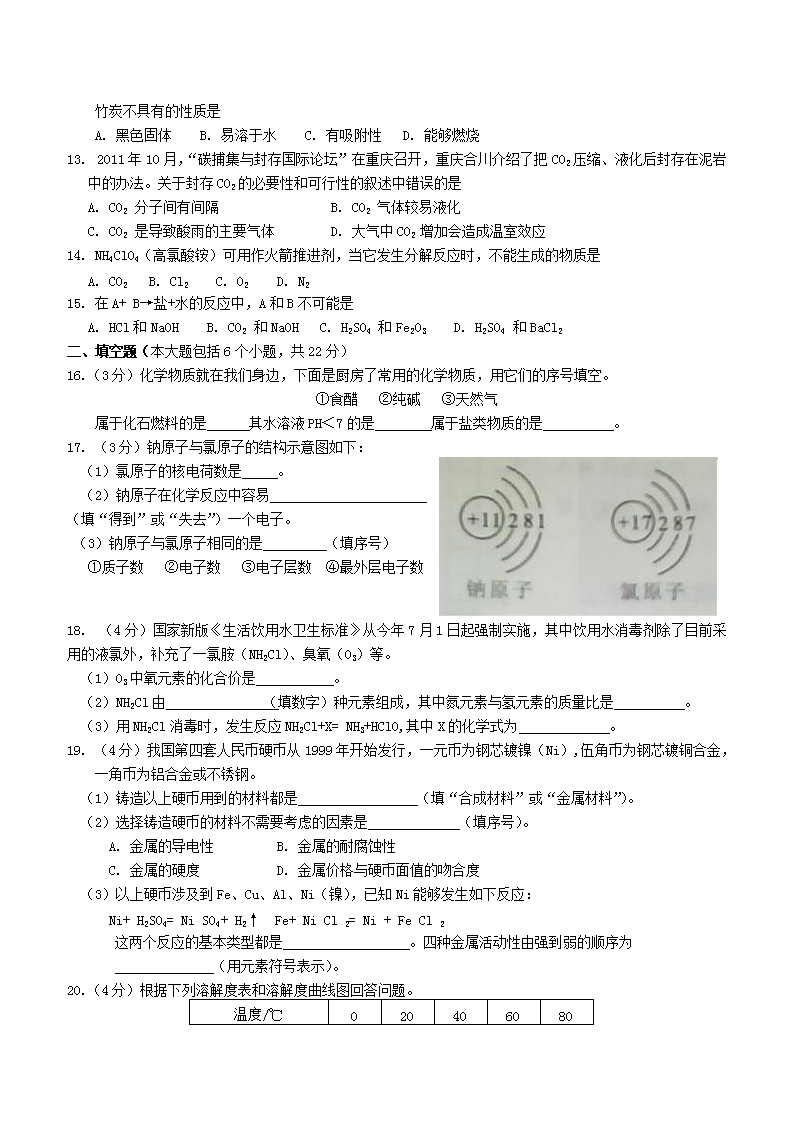 【文档名称】 2012年重庆九龙坡中考化学真题及答案(Word版).doc