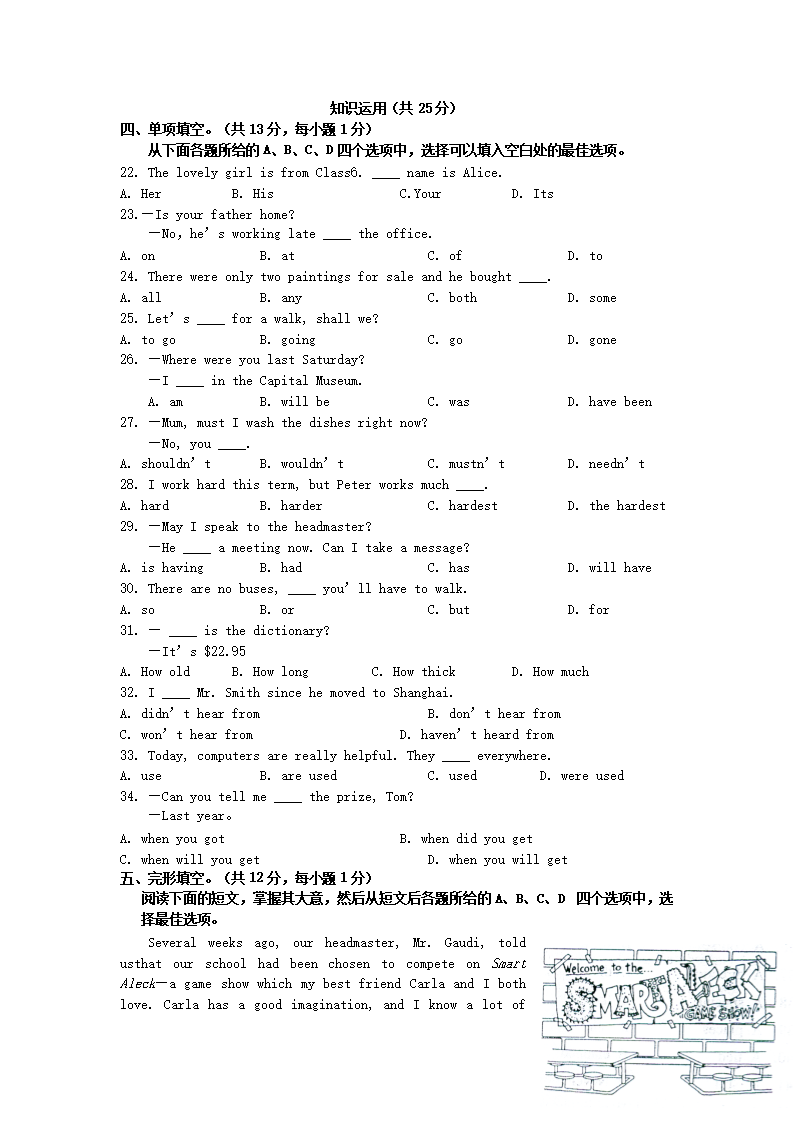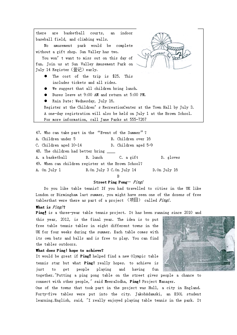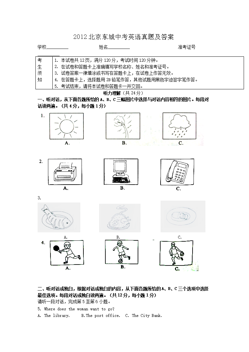 【文档名称】 2012北京东城中考英语真题及答案(Word版).doc