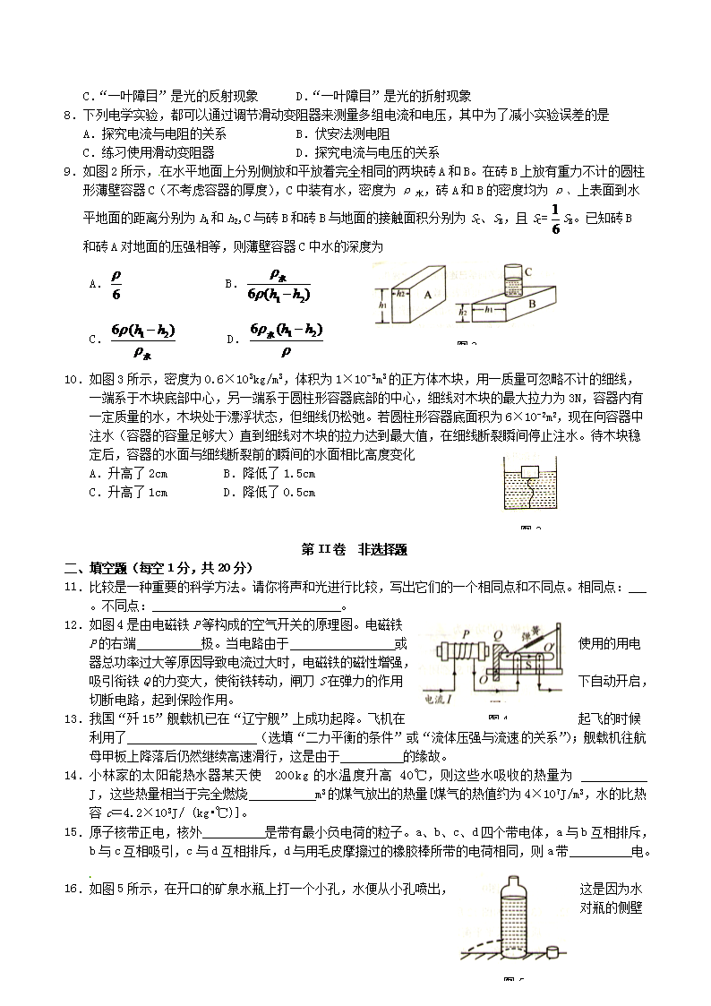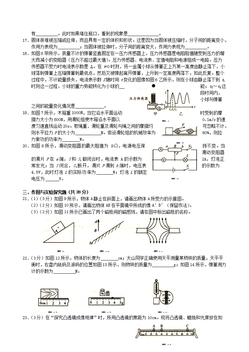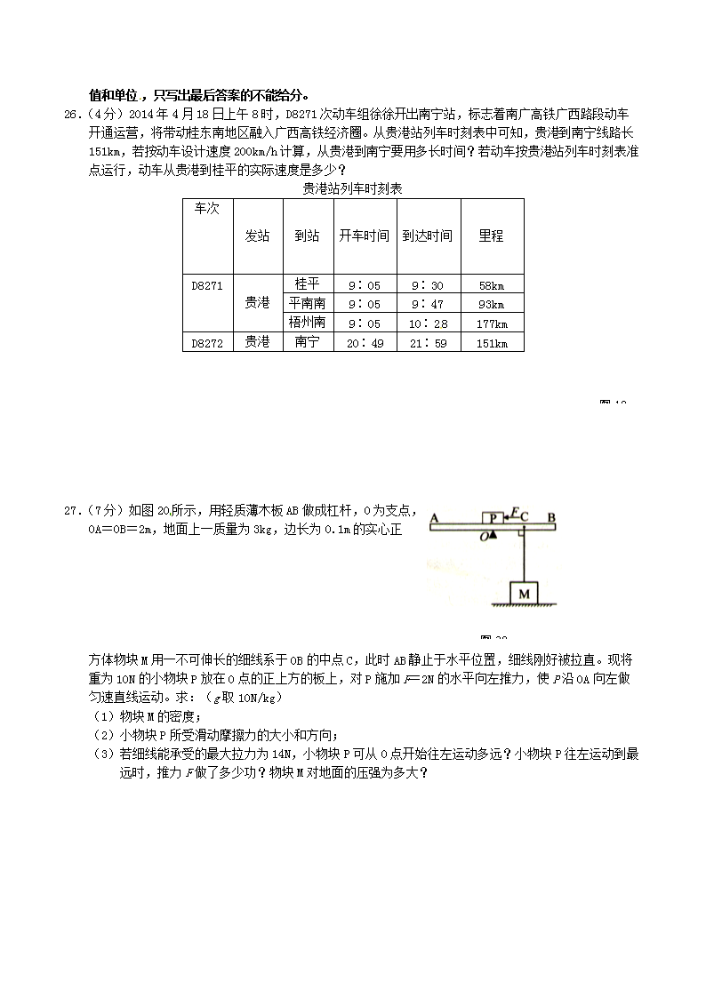 【文档名称】 2014年广西贵港市中考物理真题及答案(Word版).doc