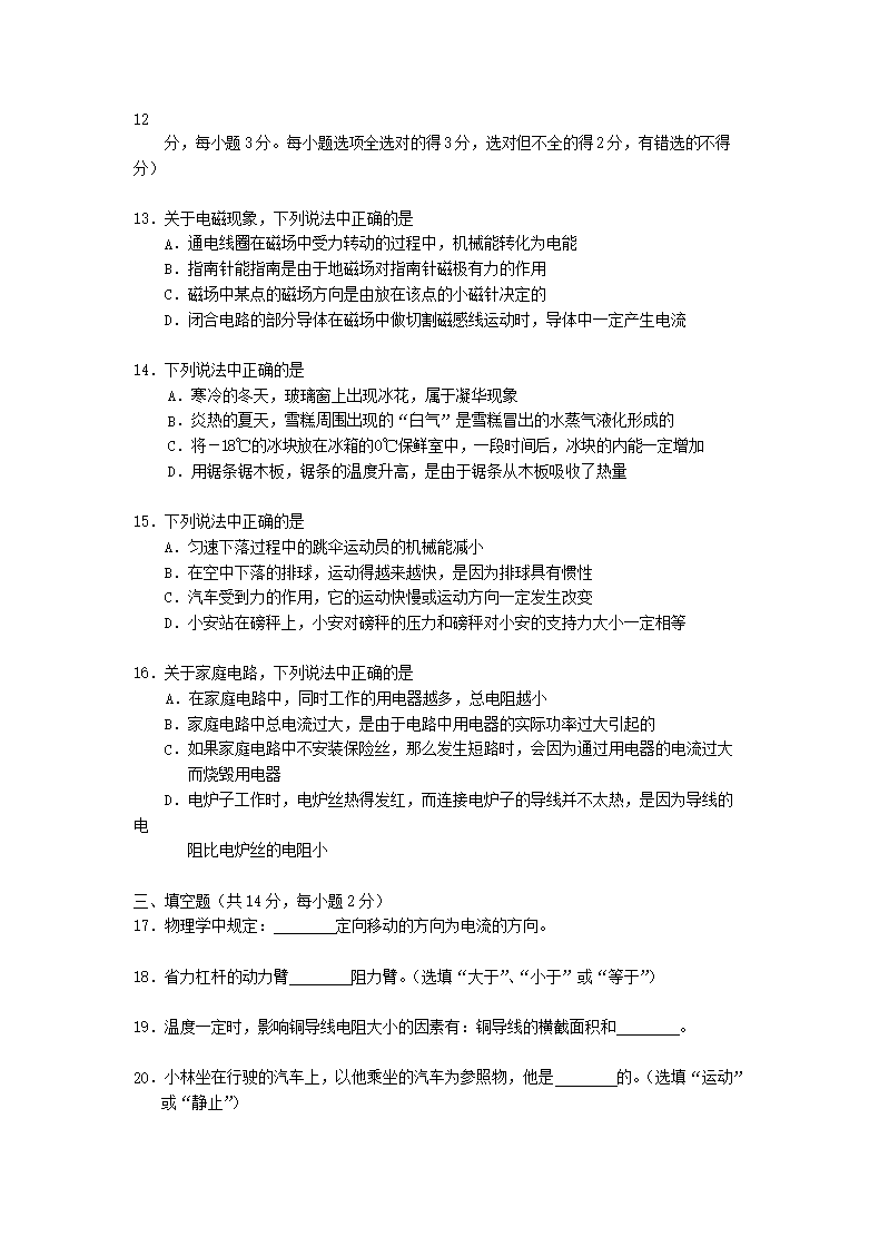 【文档预览】 无忧考网整理发布2012北京东城中考物理真题及答案(Word版),前五页预览如下: