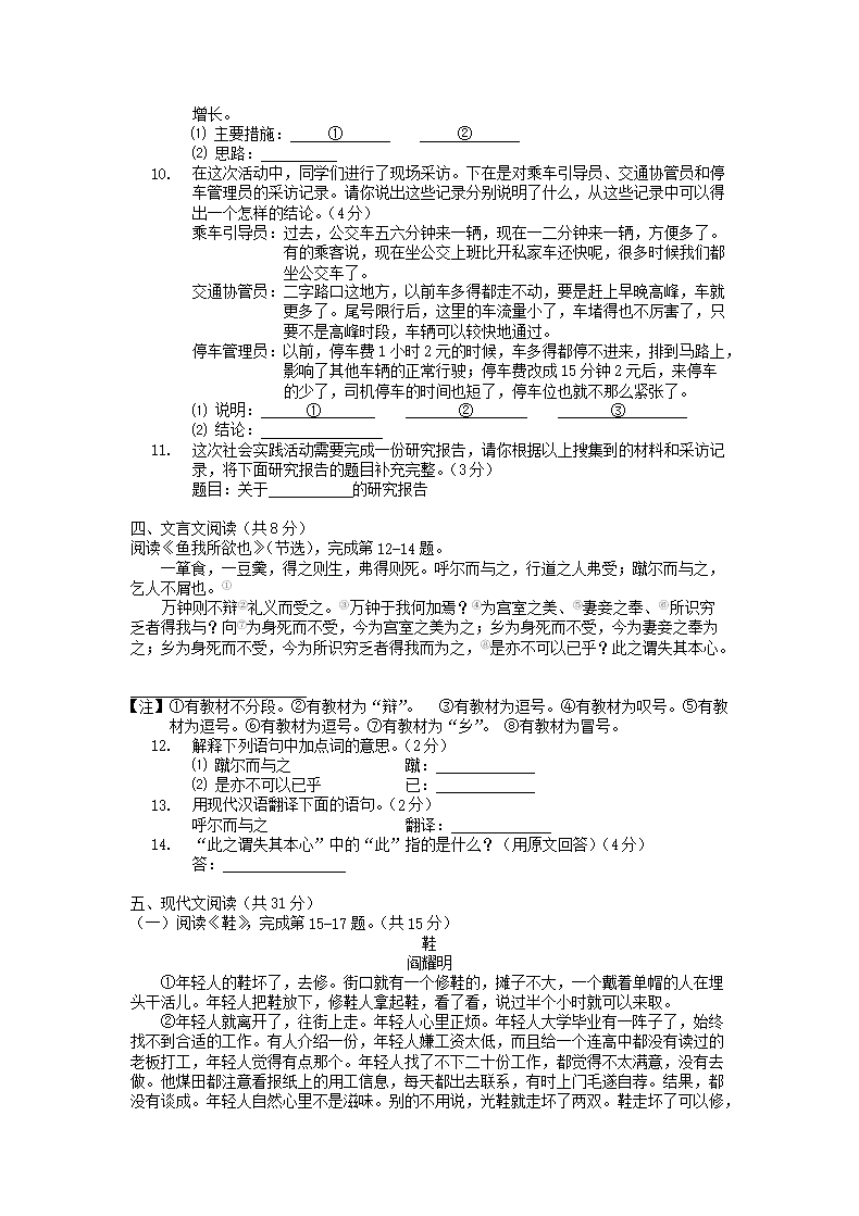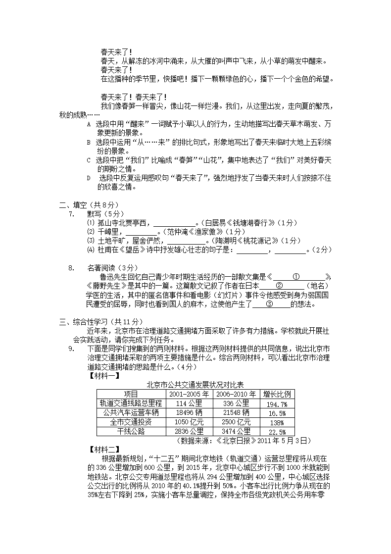 【文档名称】 2011北京海淀中考语文真题及答案(Word版).doc