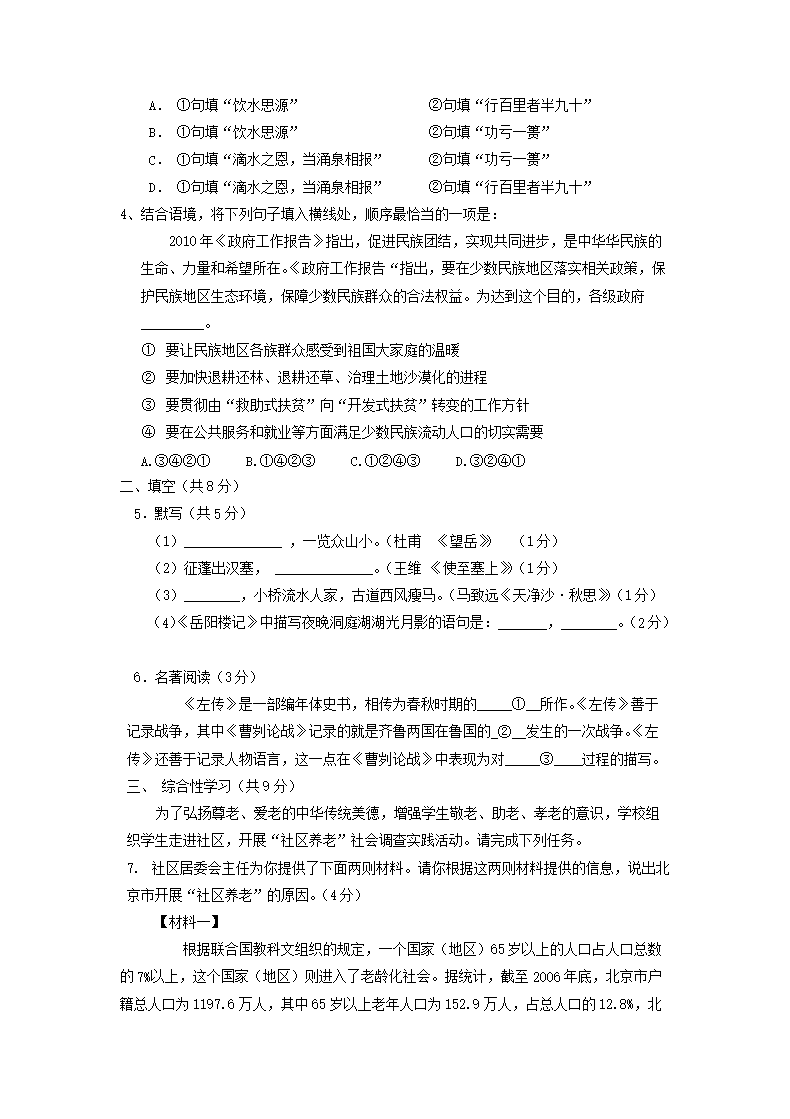 【文档名称】 2010北京东城中考语文真题及答案(Word版).doc