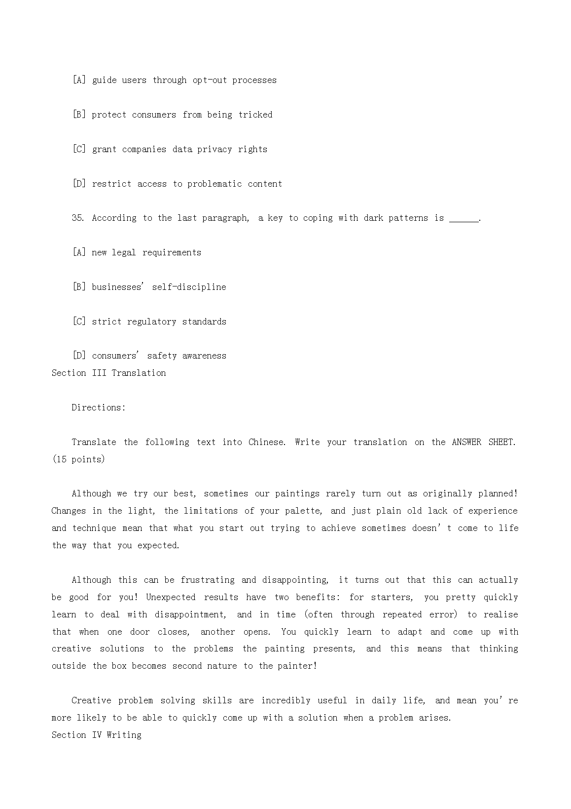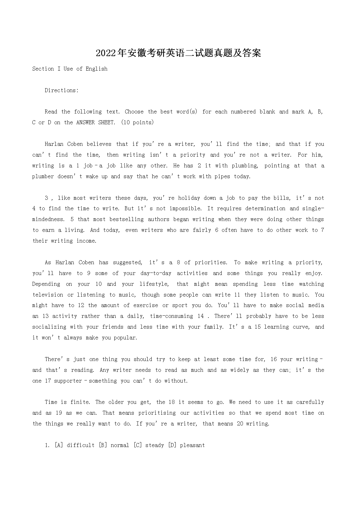 【文档预览】 无忧考网整理发布2022年安徽考研英语二试题真题及答案(Word版),前五页预览如下: