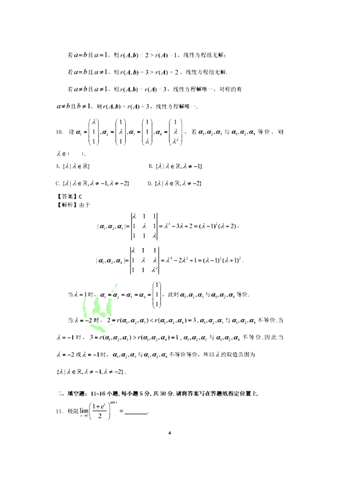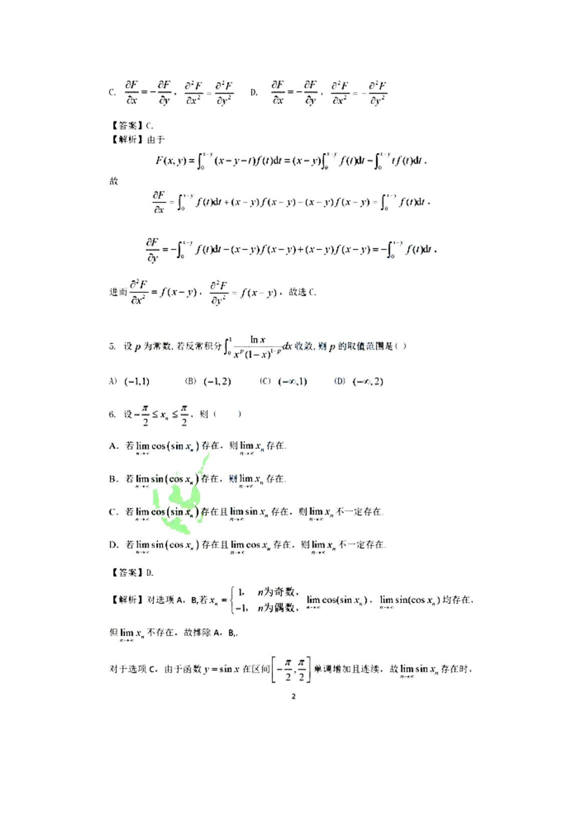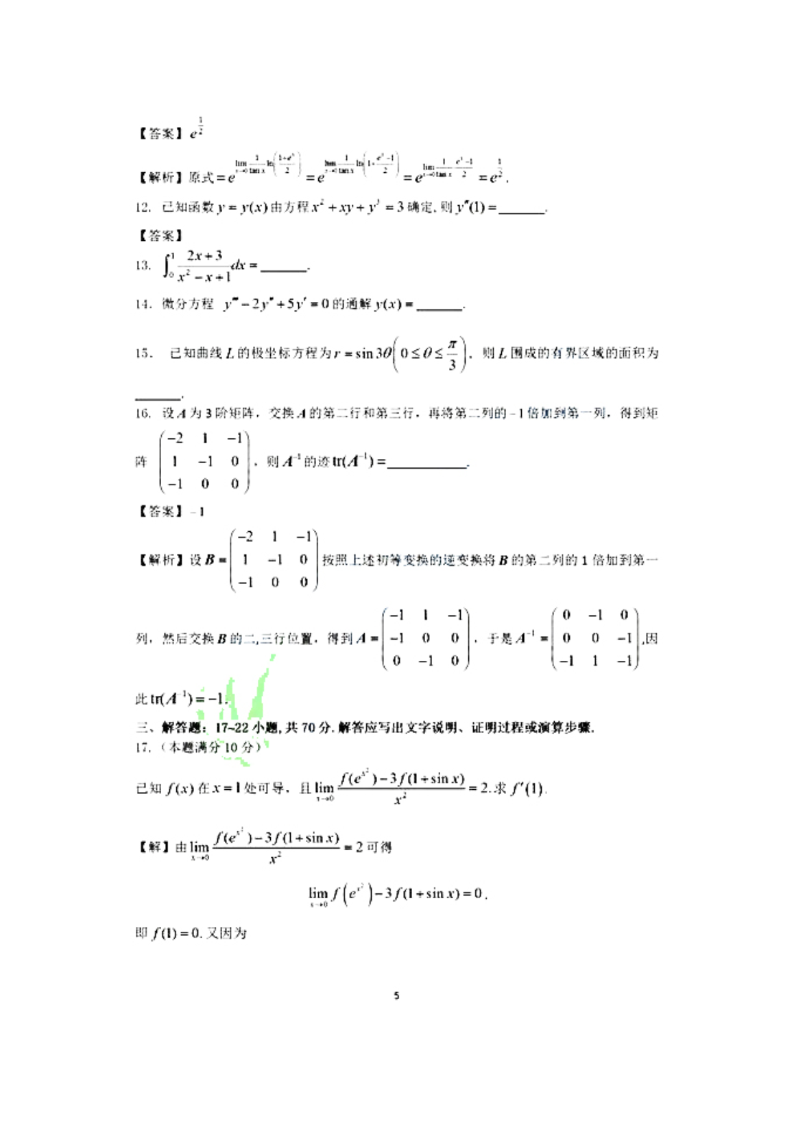 【文档名称】 2022年新疆考研数学二试题真题及答案(图片版).doc