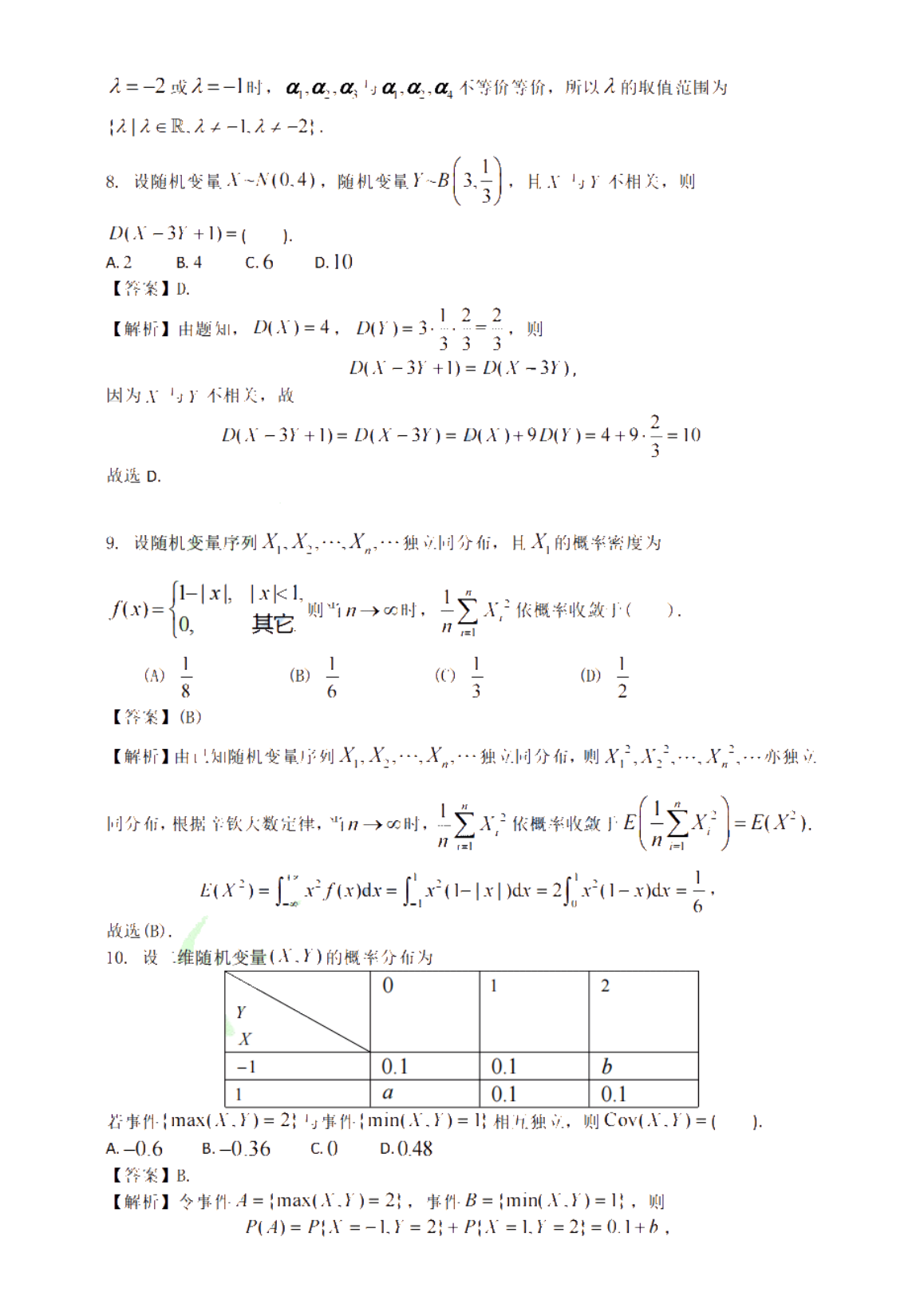 【文档名称】 2022年新疆考研数学三试题真题及答案(图片版).doc