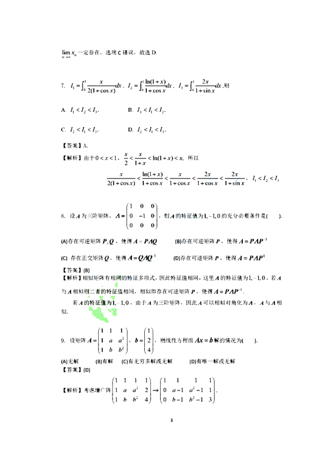 【文档名称】 2022年海南考研数学二试题真题及答案(图片版).doc