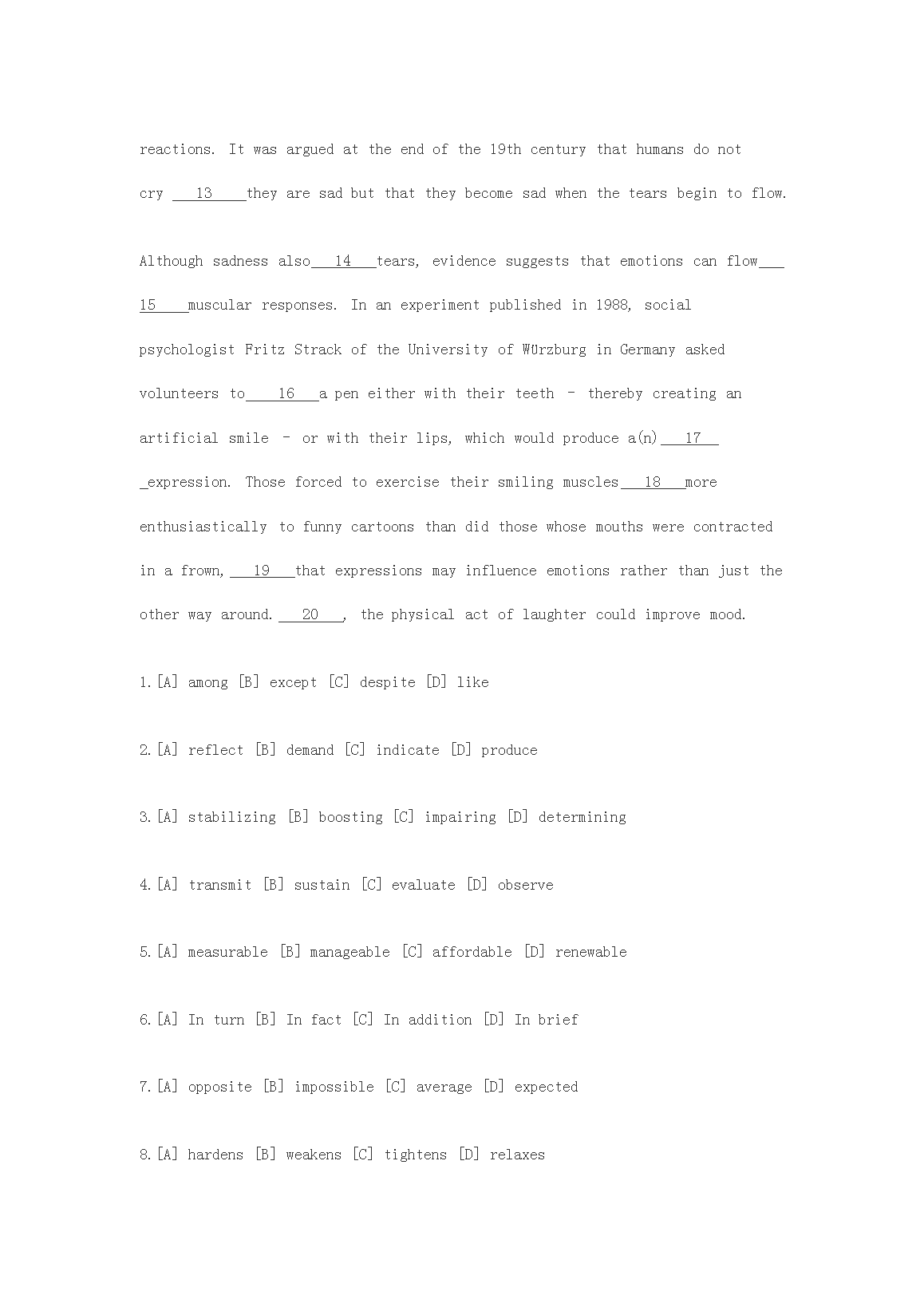 【文档名称】 2012海南考研英语一真题及答案(Word版).doc