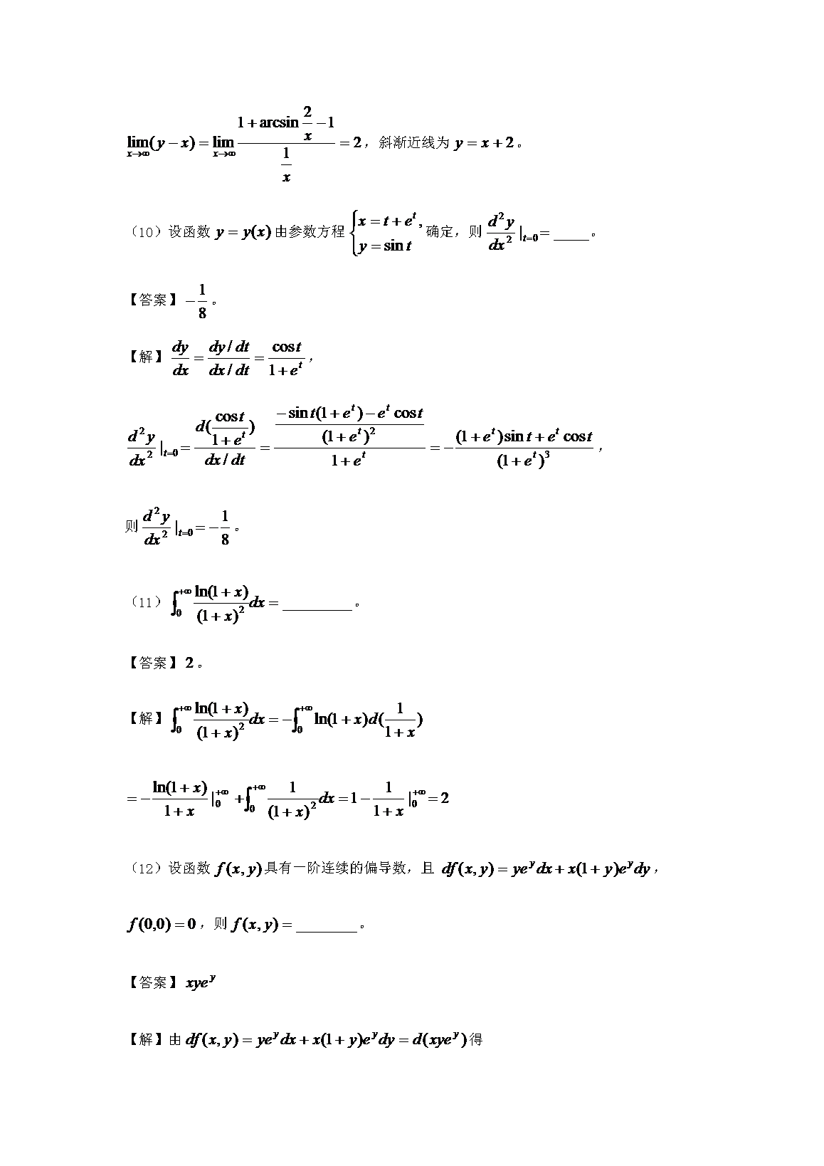 【文档名称】 2017海南考研数学二真题及答案(Word版).doc
