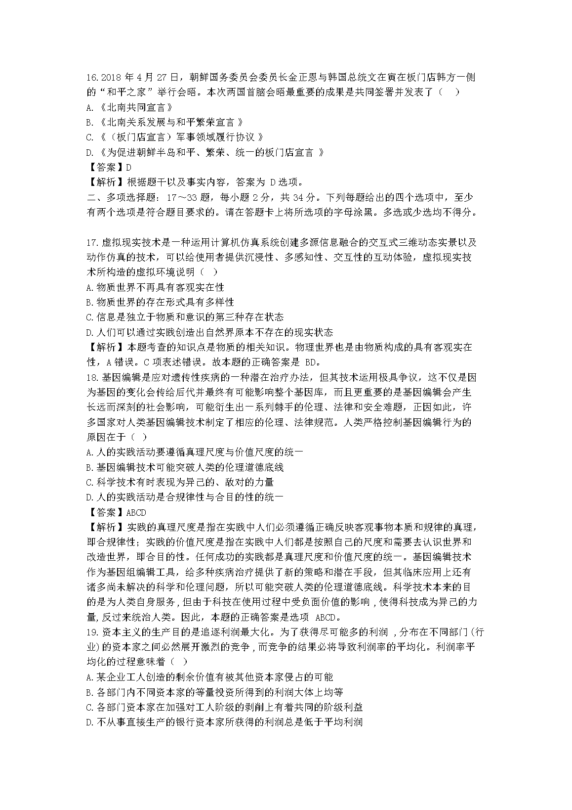 【文档名称】 2019海南考研政治真题及答案(Word版).doc