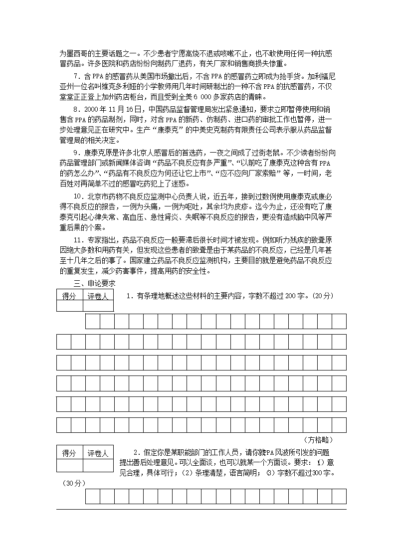 【文档名称】 2001年北京国家公务员申论考试真题及答案(Word版).doc