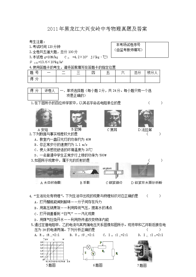 【文档预览】 无忧考网整理发布2011年黑龙江大兴安岭中考物理真题及答案(Word版),前五页预览如下: