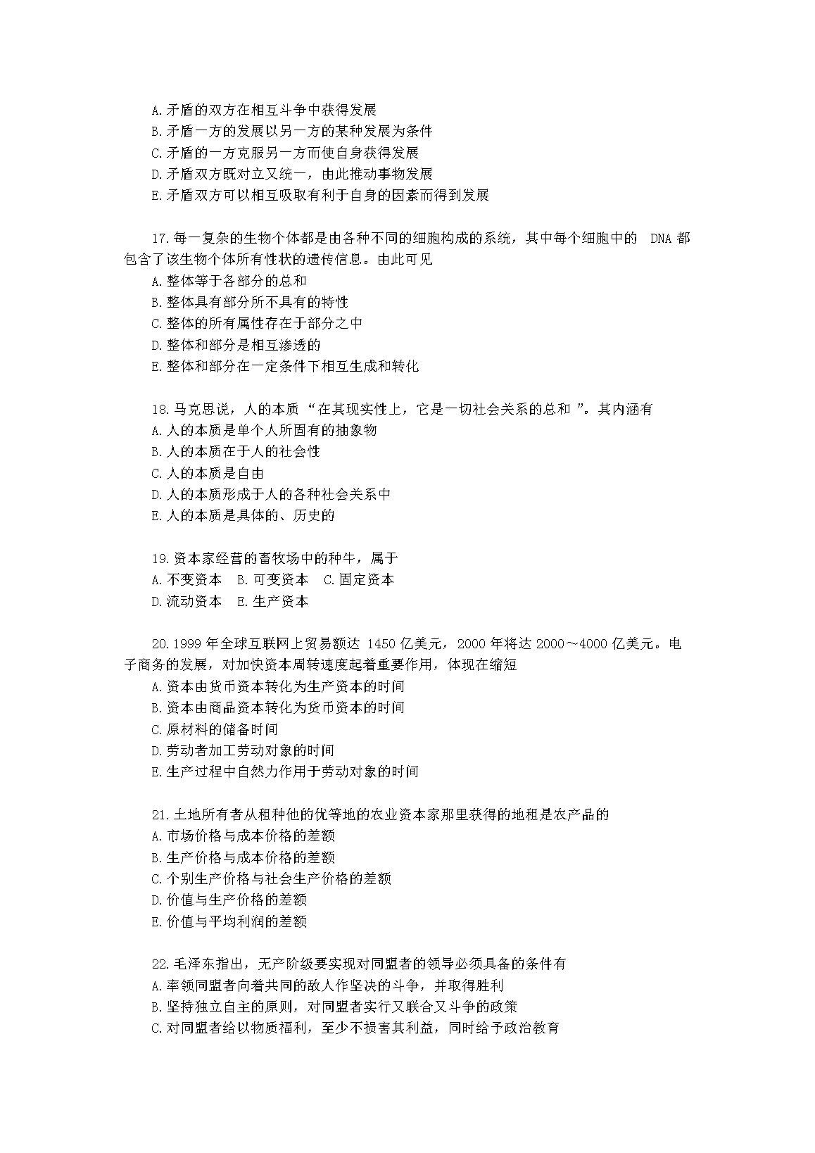 【文档名称】 2001青海考研政治真题及答案(Word版).doc