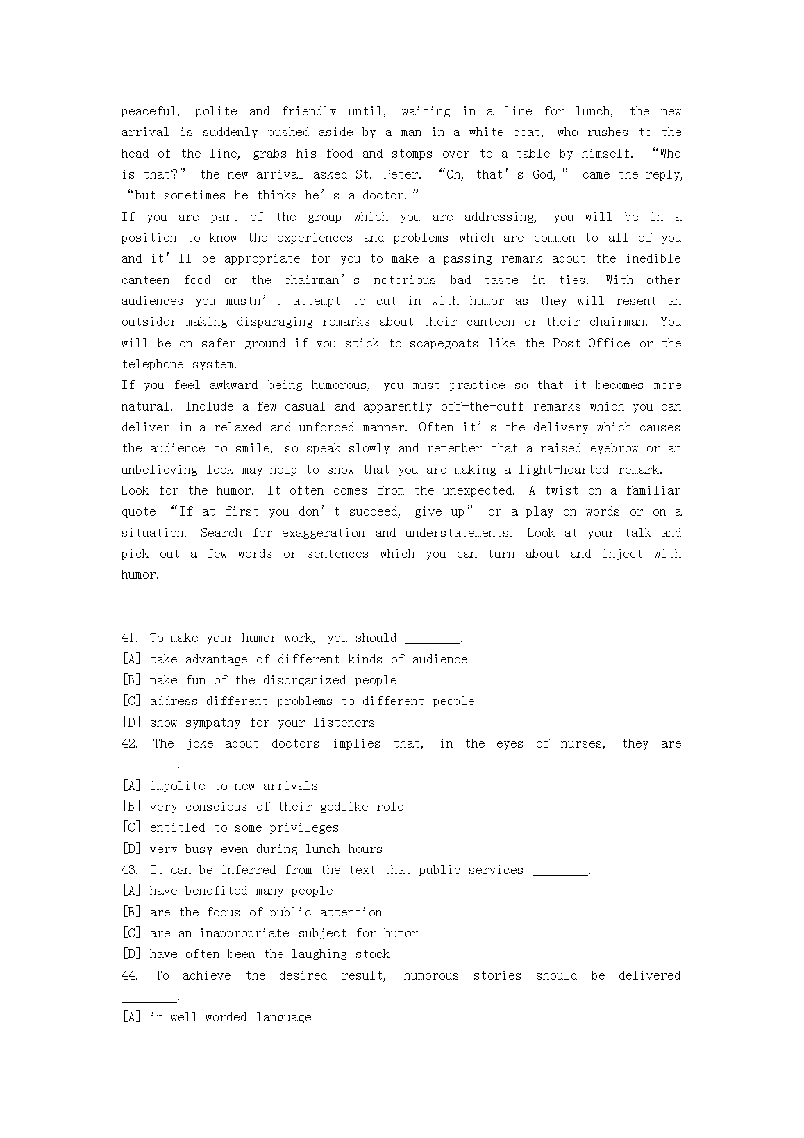 【文档预览】 无忧考网整理发布2002青海考研英语二真题及答案(Word版),前五页预览如下: