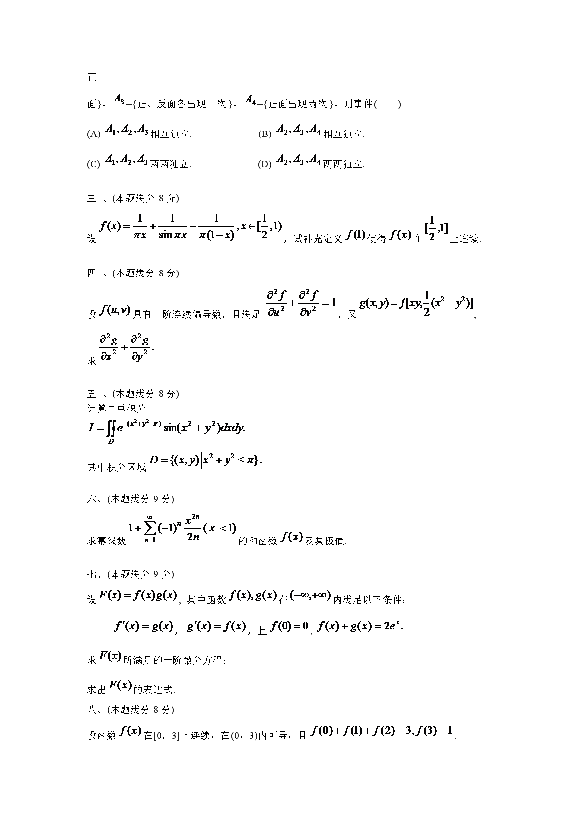 【文档名称】 2003青海考研数学三真题及答案(Word版).doc