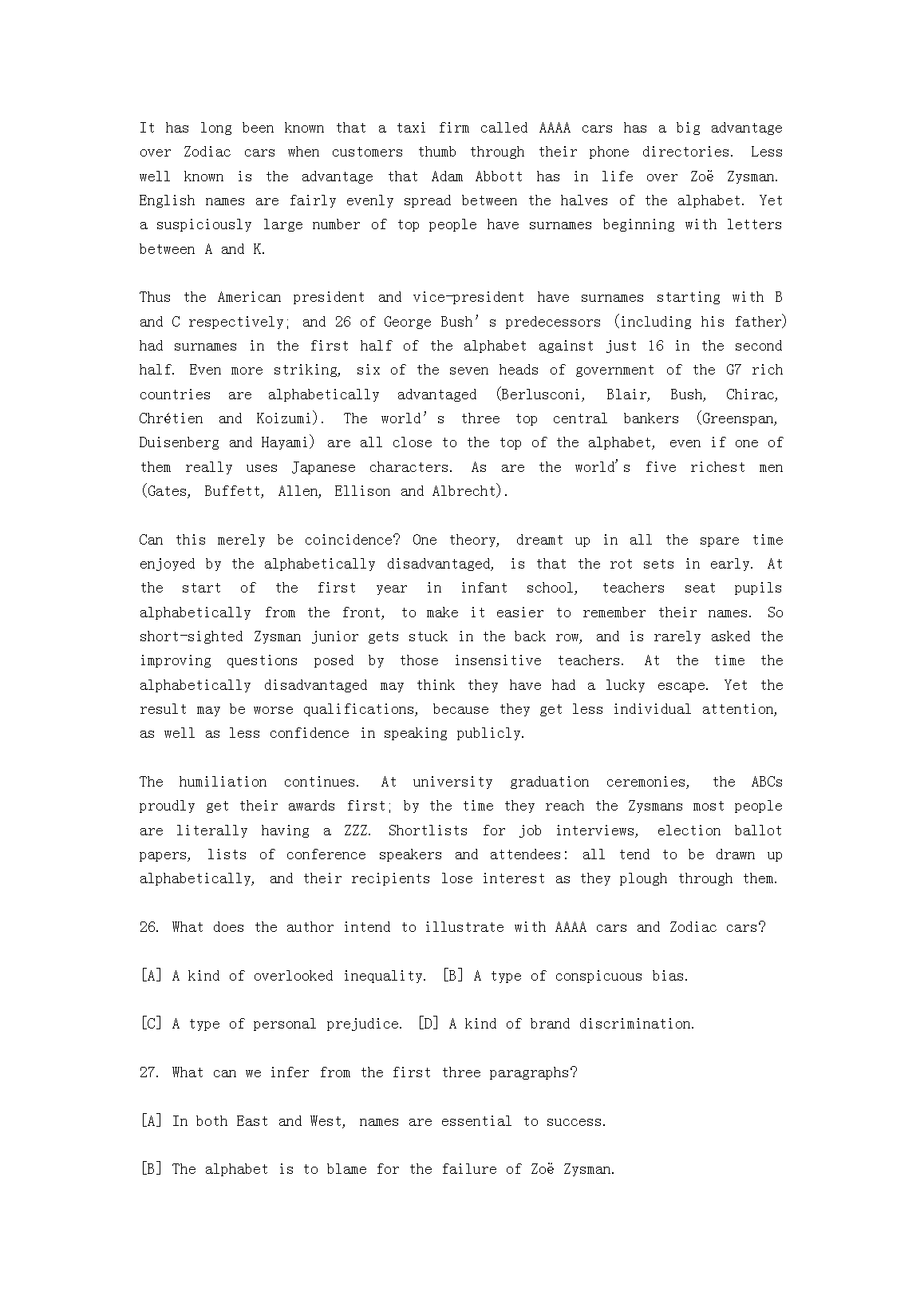 【文档名称】 2004青海考研英语二真题及答案(Word版).doc