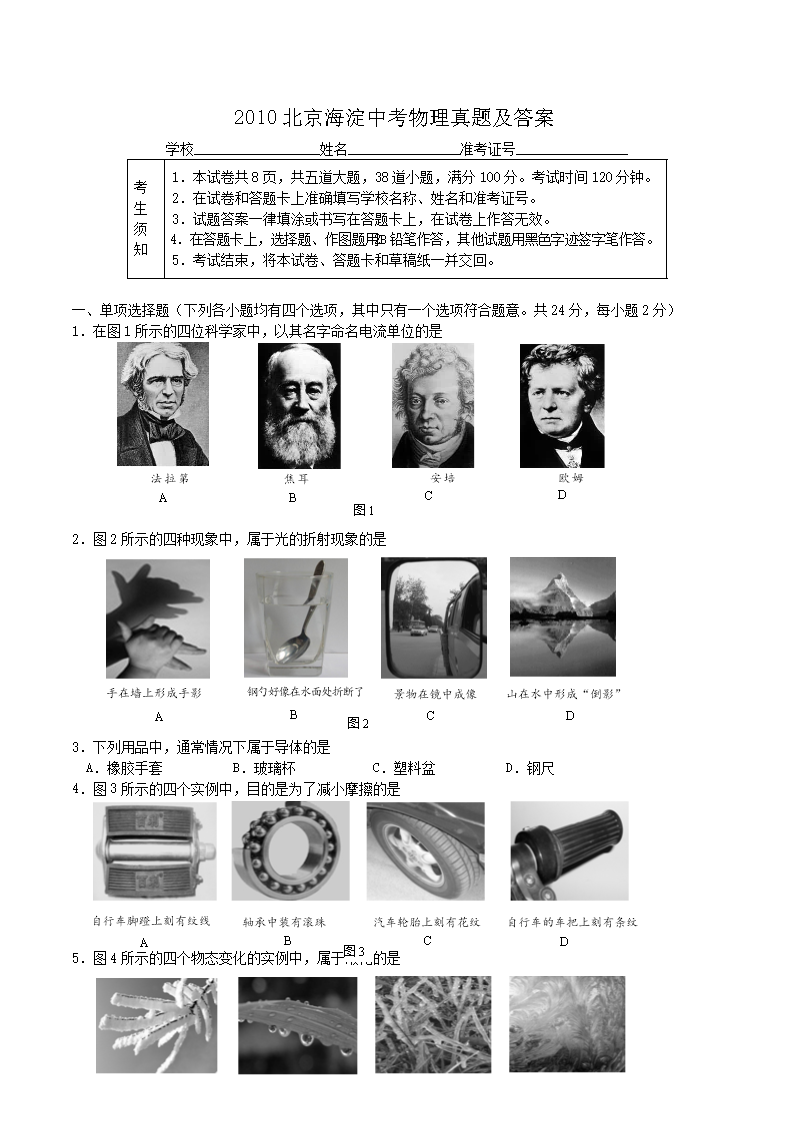 【文档名称】 2010北京海淀中考物理真题及答案(Word版).doc